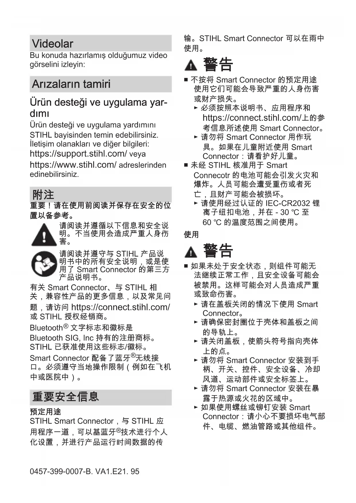 请阅读并遵守与 STIHL 产品说 明书中的所有安全说明,或是使 用了 Smart Connector 的第三方