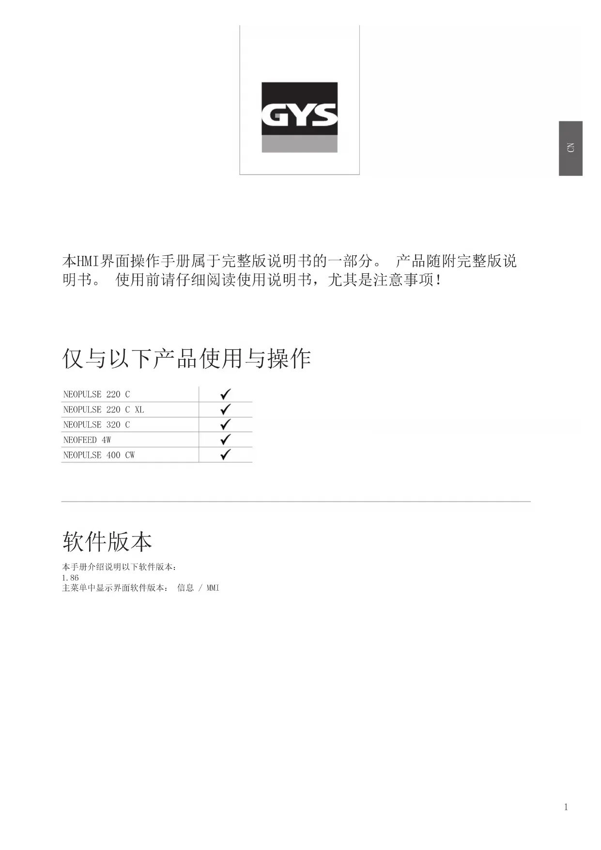 免费查找设备手册 Neopulse 320 C GYS PDF格式.