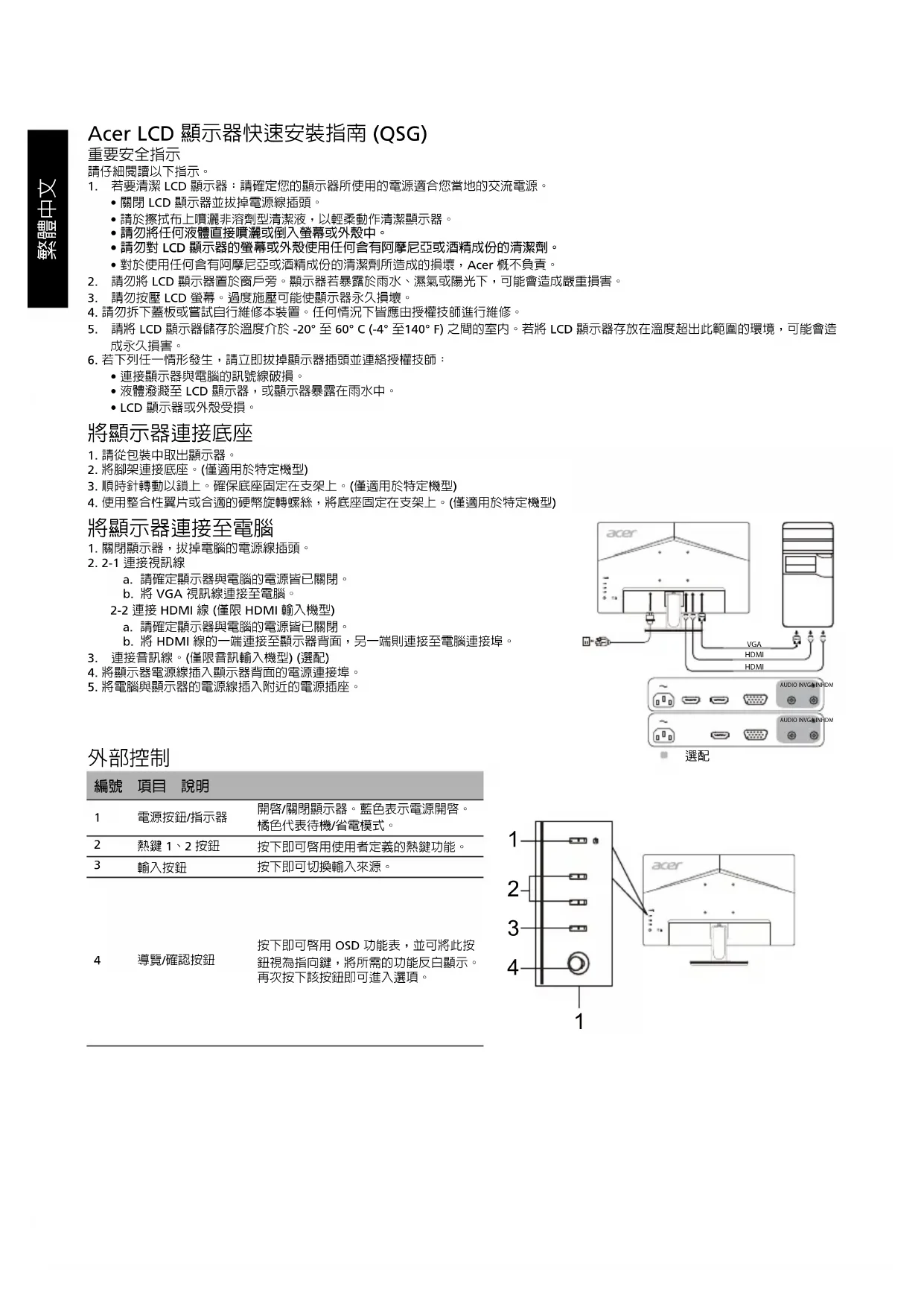 規格視機型及/或地區而定。简体中文 Acer 液晶显示器快速入门指南 (QSG)