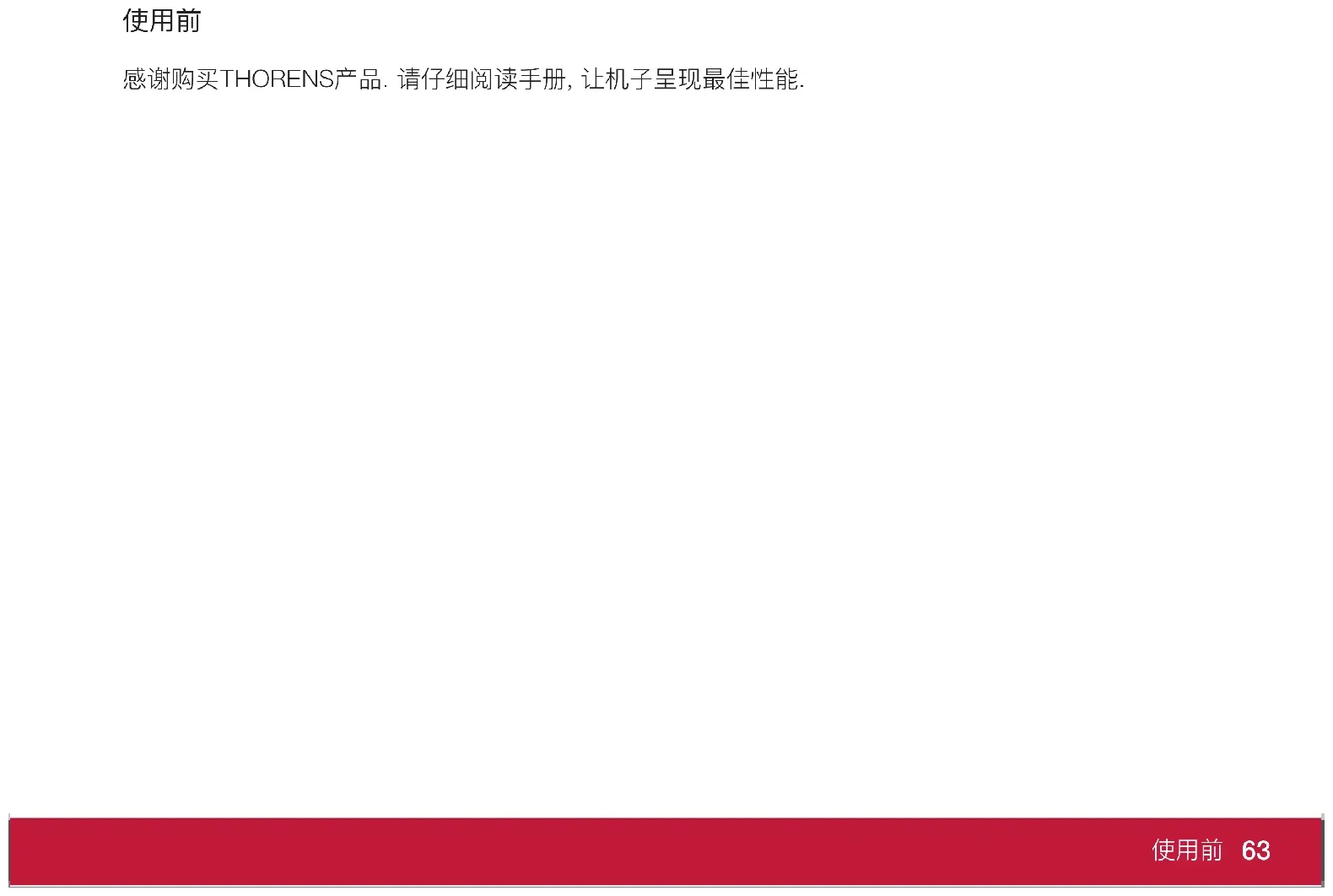 感谢购买THORENS产品. 请仔细阅读手册, 让机子呈现最佳性能.64