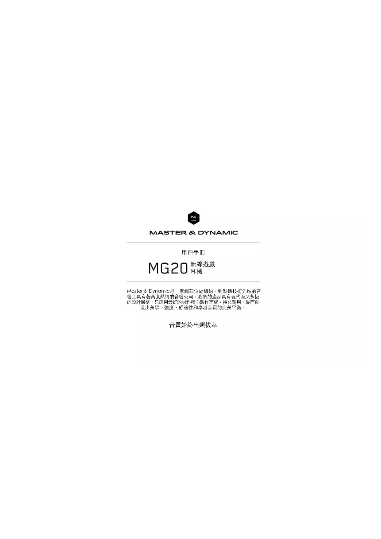 用户手册 MG20 MASTER DYNAMIC