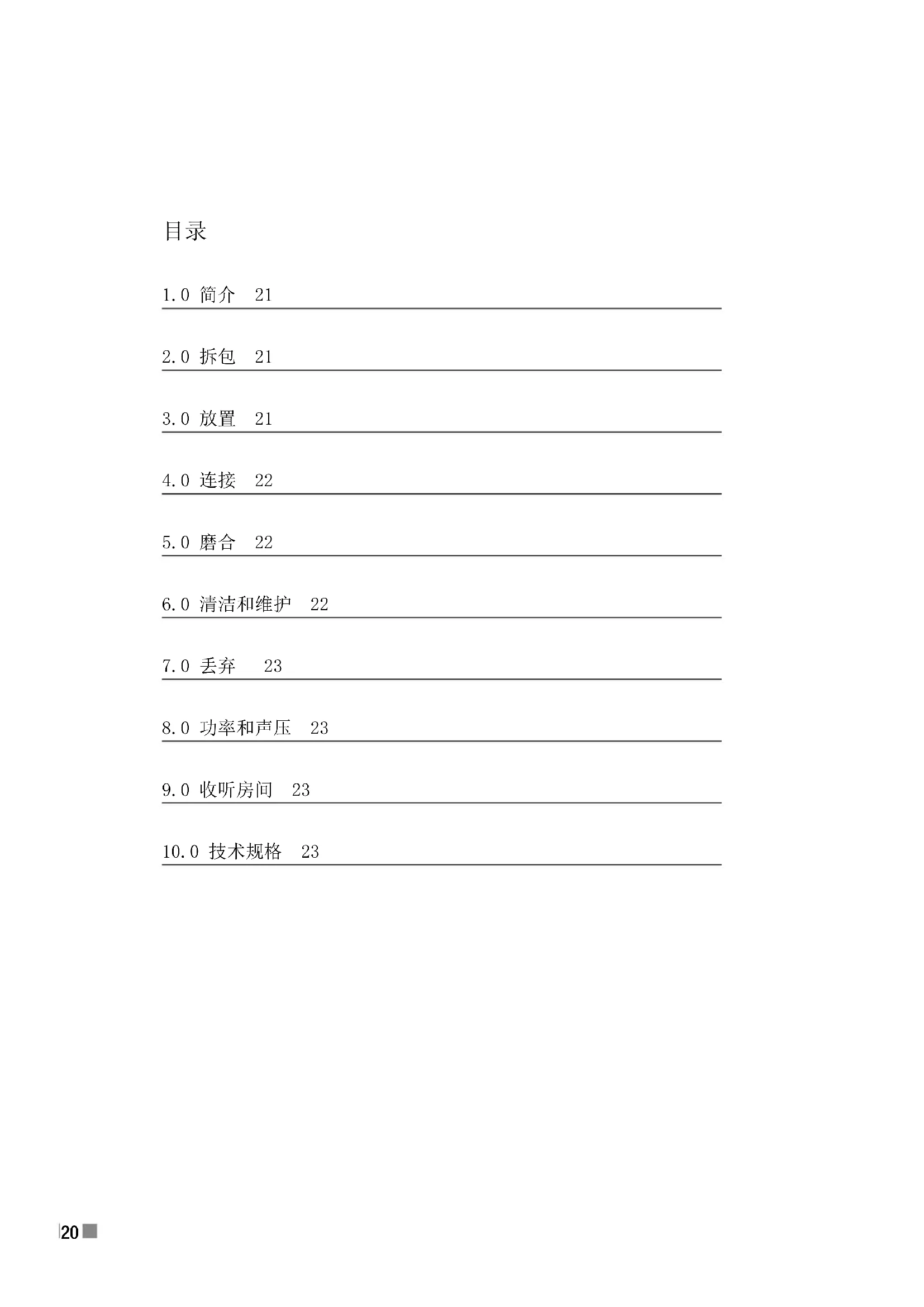 和任何机械系统一样,音箱也需要一个“磨合”期才能达到最佳性能。在第一个使用阶段,您将体验到音质逐渐提升。磨合期因使用方法和播放音量而异。您应播放长达100小时才能达到最佳性能。与其他机械系统不同,可以通过定期正常播放音乐来延长音箱的使用寿命。