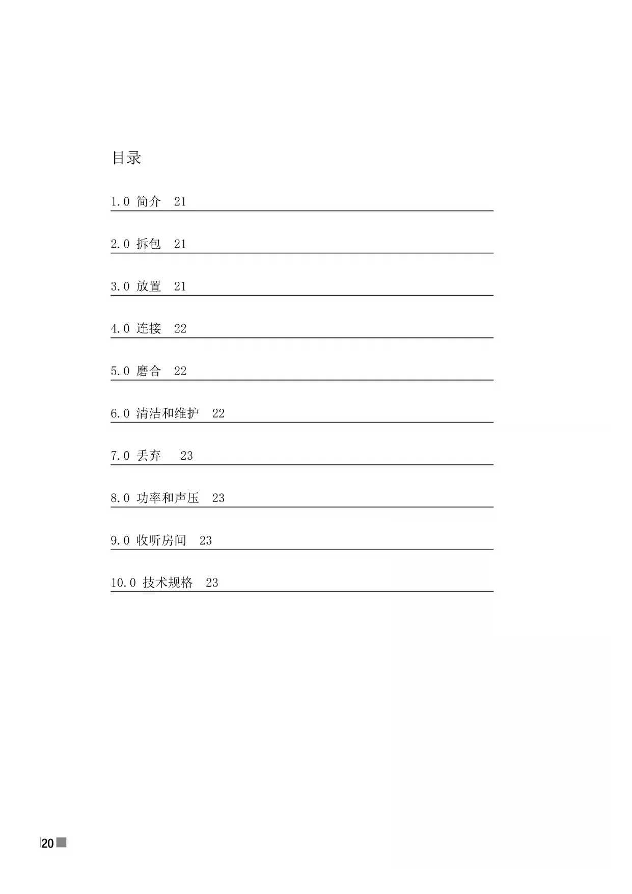 和任何机械系统一样,音箱也需要一个“磨合”期才能达到最佳性能。在第一个使用阶 段,您将体验到音质逐渐提升。磨合期因使用方法和播放音量而异。您应播放长达 100 小时才能达到最佳性能。与其他机械系统不同,可以通过定期正常播放音乐来延长音箱的