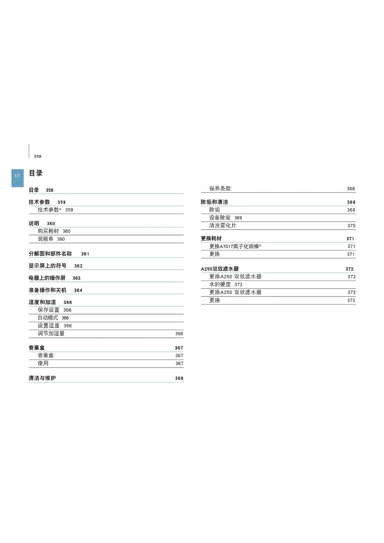 | 每两至六个月更换A250双效滤水器 | |