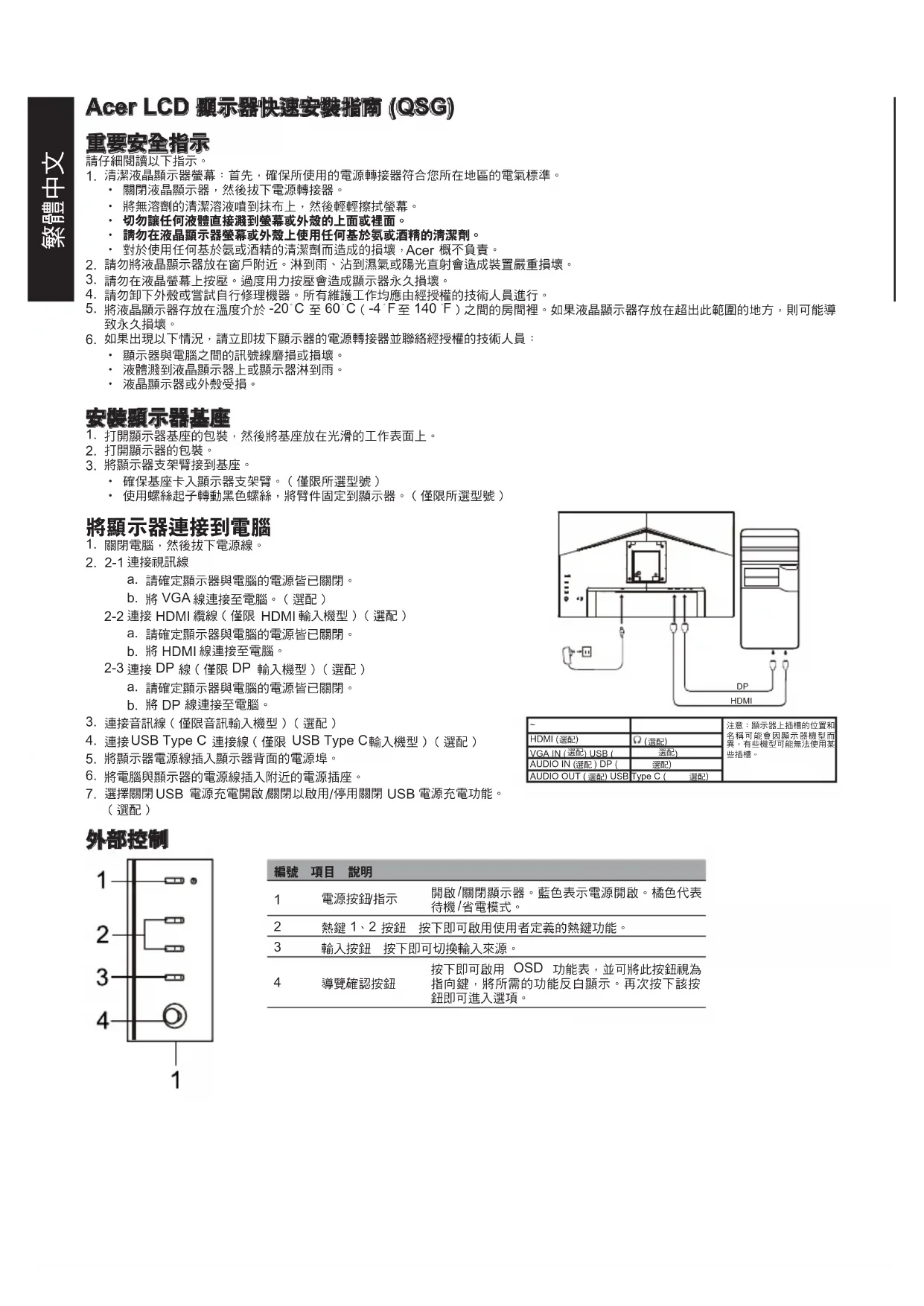 2011/65/EU,以及針對建立框架用於制定生態設計要求之指令 2009/125/EC 的基本要求和其他相關規定。Acer 顯示器專用於對得自電子裝置之資訊進行視訊和視覺化顯示。繁體中文