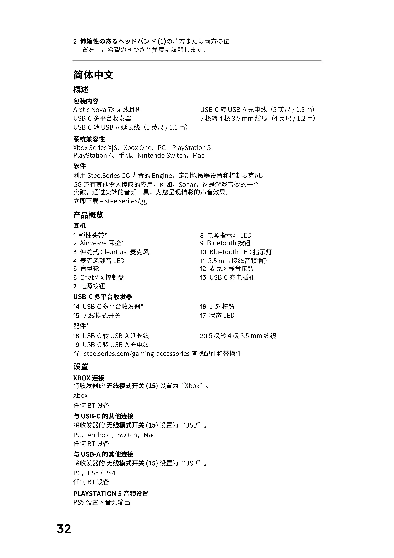 用户手册 Arctis Nova 7X Wireless STEELSERIES