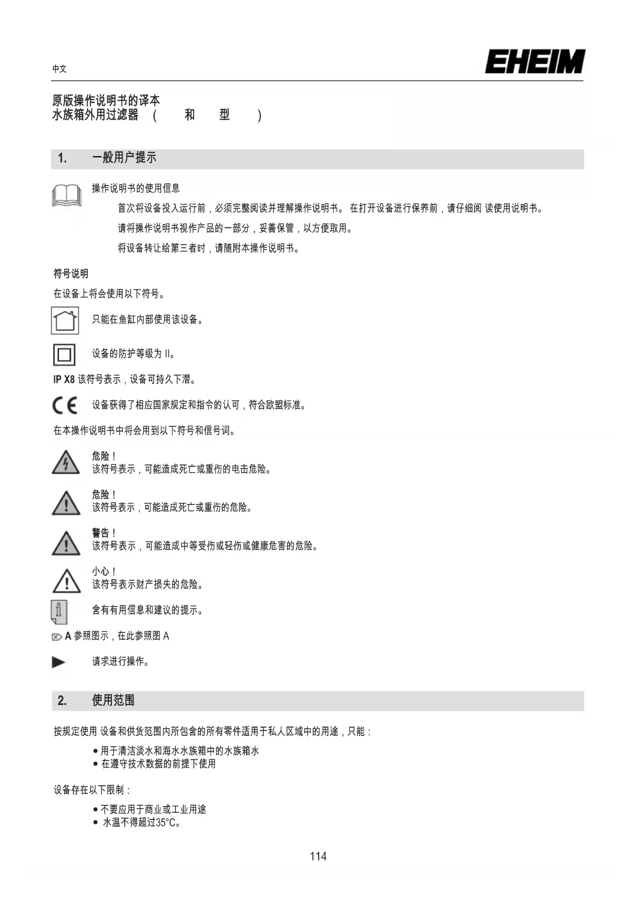 Classic 1500XL - 净水器 EHEIM - 免费用户手册