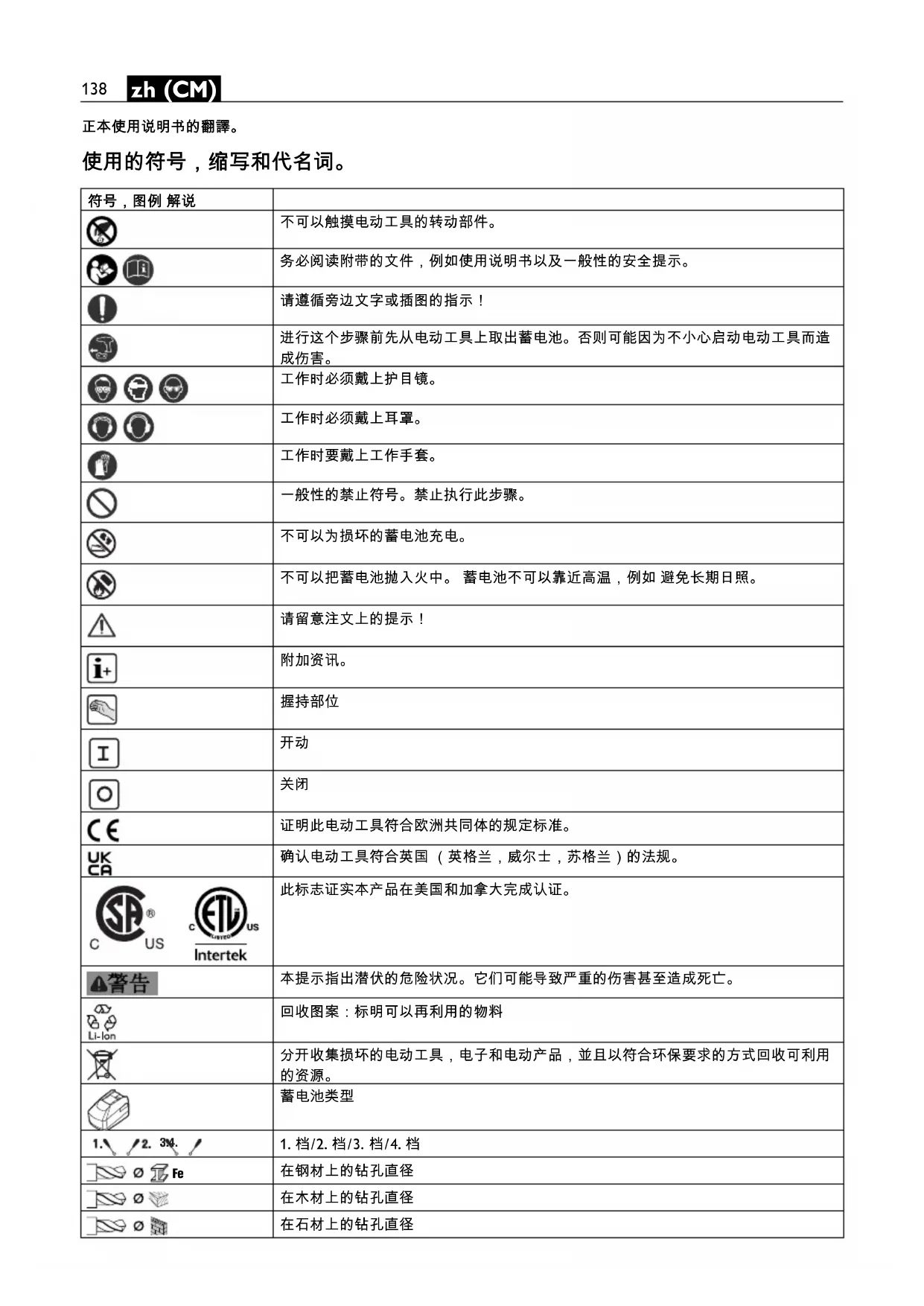 | 分开收集损坏的电动工具,电子和电动产品,并且以符合环保要求的方式回收可利用的资源。 | |