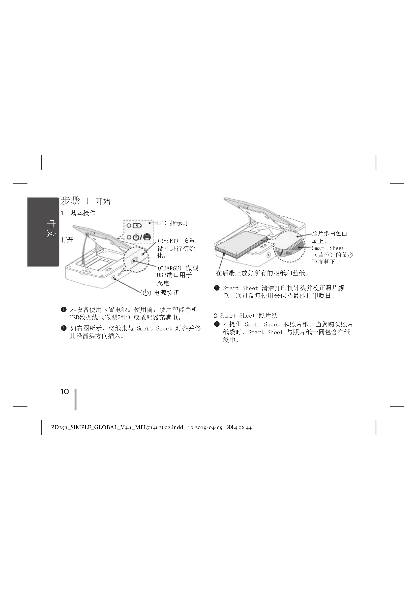 未提供 Smart Sheet 與照片紙。購買照片紙袋 時,Smart Sheet 連同照片紙附於同一個袋內。 中文(Taiwan) PD251_SIMPLE_GLOBAL_V4.1_MFL71462602.indd 14 2019-04-09 4:06:4515 Smart Sheet 在使用時,應與同一袋中的相片