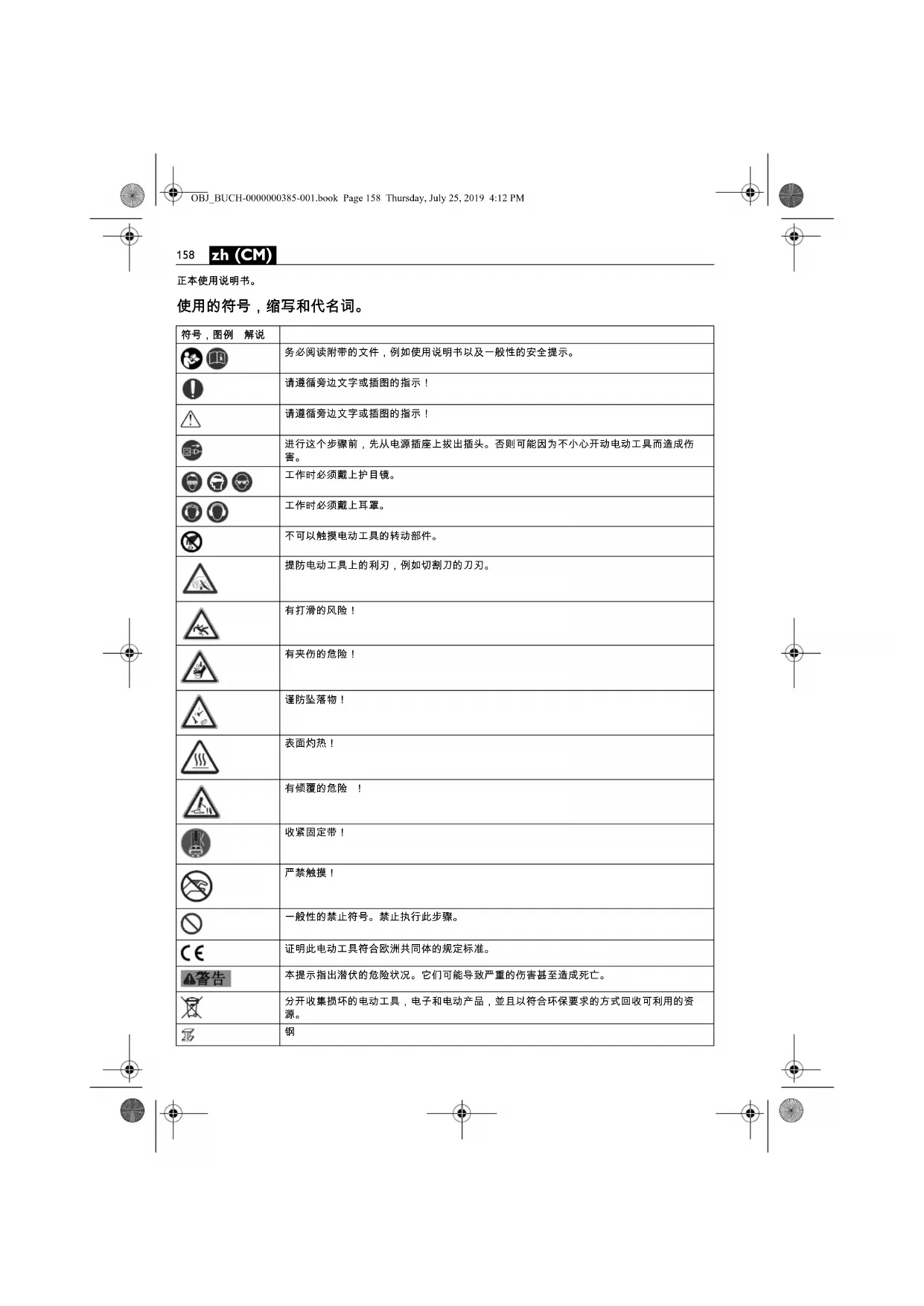 OBJ_BUCH-0000000385-001.book Page 160 Thursday, July 25, 2019 4:12 PM161 zh (CM) 定期使用非金属工具清洁电动工具的通风孔。 马达的风 扇会把灰尘吸入机壳中。机器内部如果堆积了大量的金
