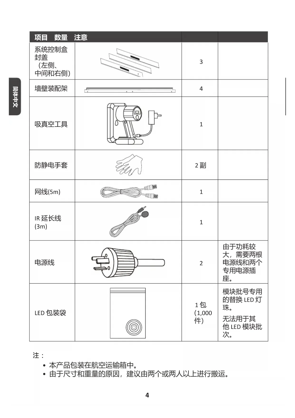 - 由于尺寸和重量的原因,建议由两个或两人以上进行搬运。5