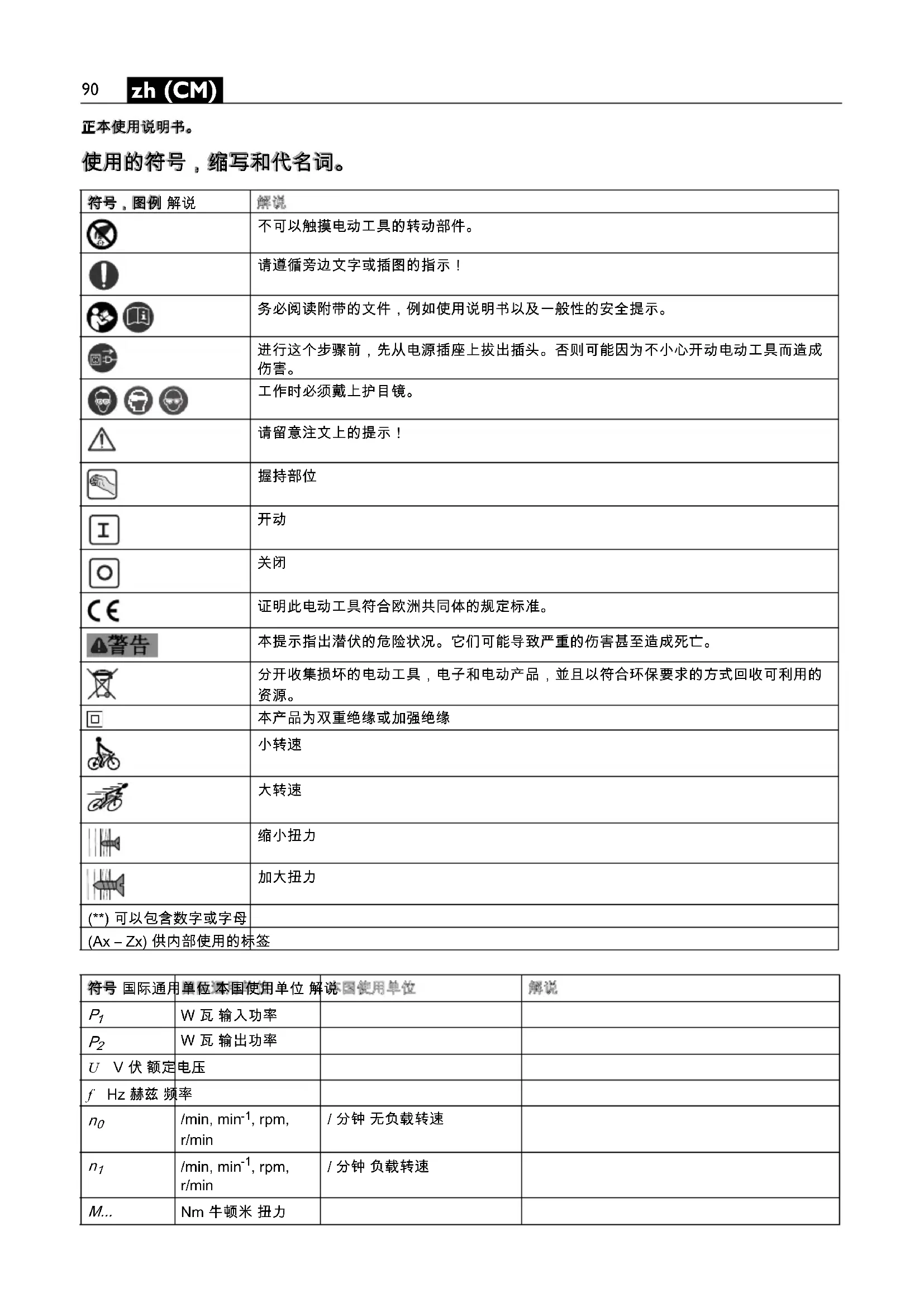 振荡发射值 ( 拧转 )m, s, kg, A, mm, V, W, Hz, N, °C, dB, min, m/s 米,秒,公斤,安培,毫米,伏特,瓦,赫兹,牛顿,摄氏,分贝 , 分 , 米 / 秒 国际性单位系统 SI 中的标准单位和引用单位。 号 国际通用单位 本国使用单位 解说 OBJ_BUCH-0000000389-001.book Page 91 Monday, August 19, 2019 3:14 PM92 zh (CM)