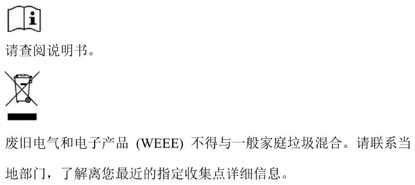 废旧电气和电子产品 (WEEE) 不得与一般家庭垃圾混合。请联系当 地部门,了解离您最近的指定收集点详细信息。安全图标释义
