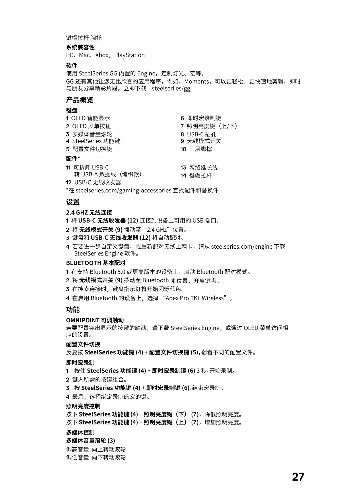 用户手册 Apex Pro TKL Wireless STEELSERIES