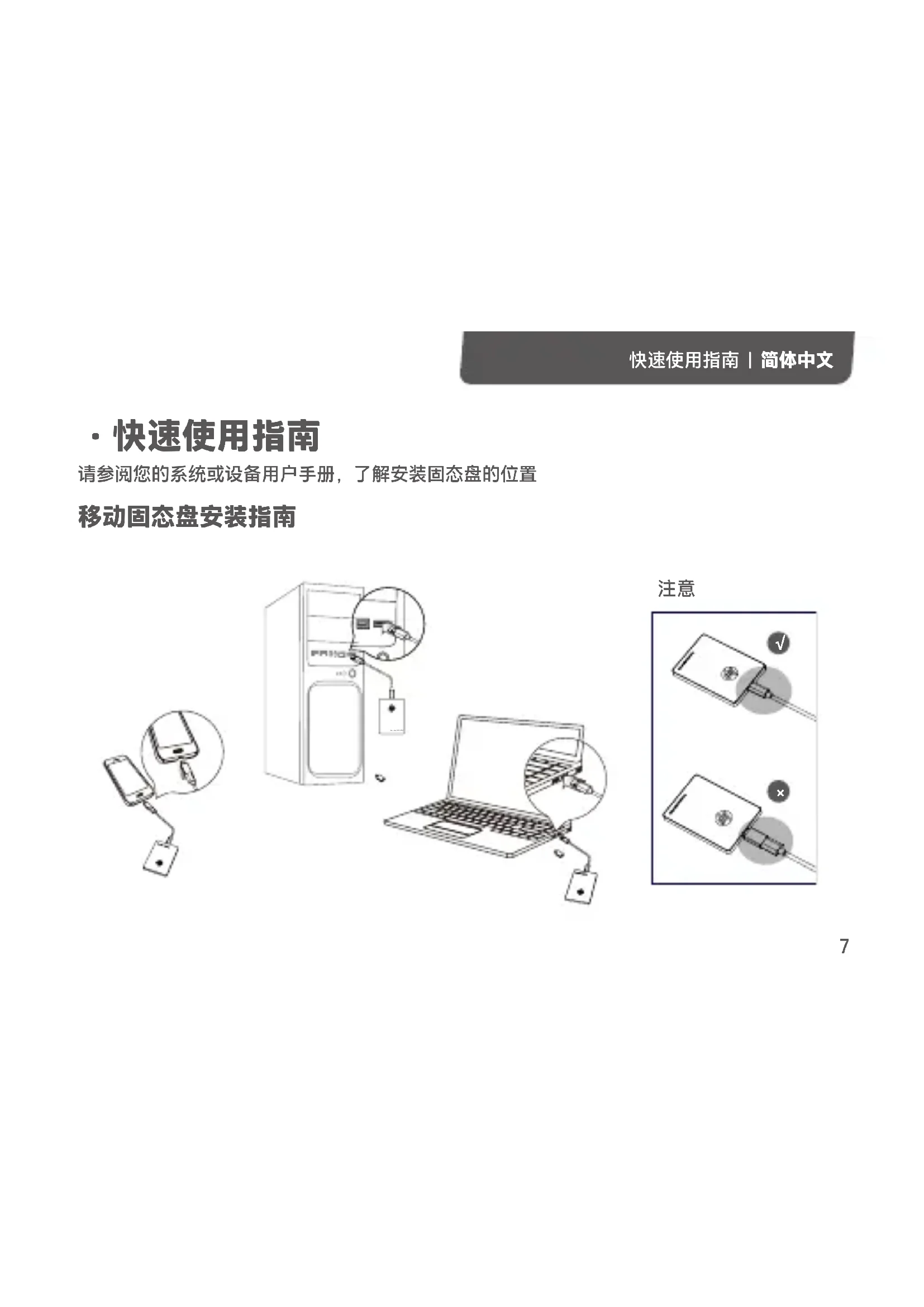 請參閱您的系統或設備使用者手冊,瞭解安裝固態盤的位置 快速使用指南 | 繁體中文 Portable SSD P700