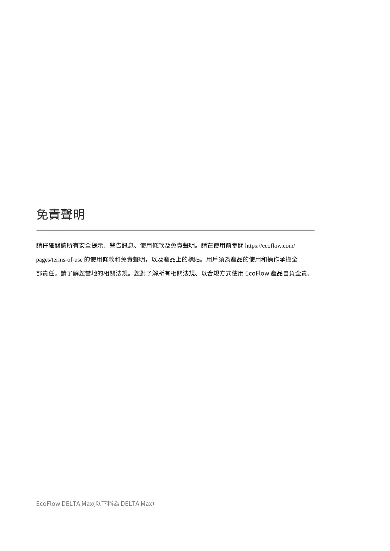 使用 EcoFlow 產品、應用程式和服務,即代表您同意 EcoFlow 使用條款和私隱政策; 您可經由 EcoFlow 應用程式「用戶」頁面的「關於」部分或 EcoFlow 官方網站 (https://ecoflow.com/pages/terms-of-use 及 https://ecoflow.com/pages/privacy-policy)查 閱上述內容。10