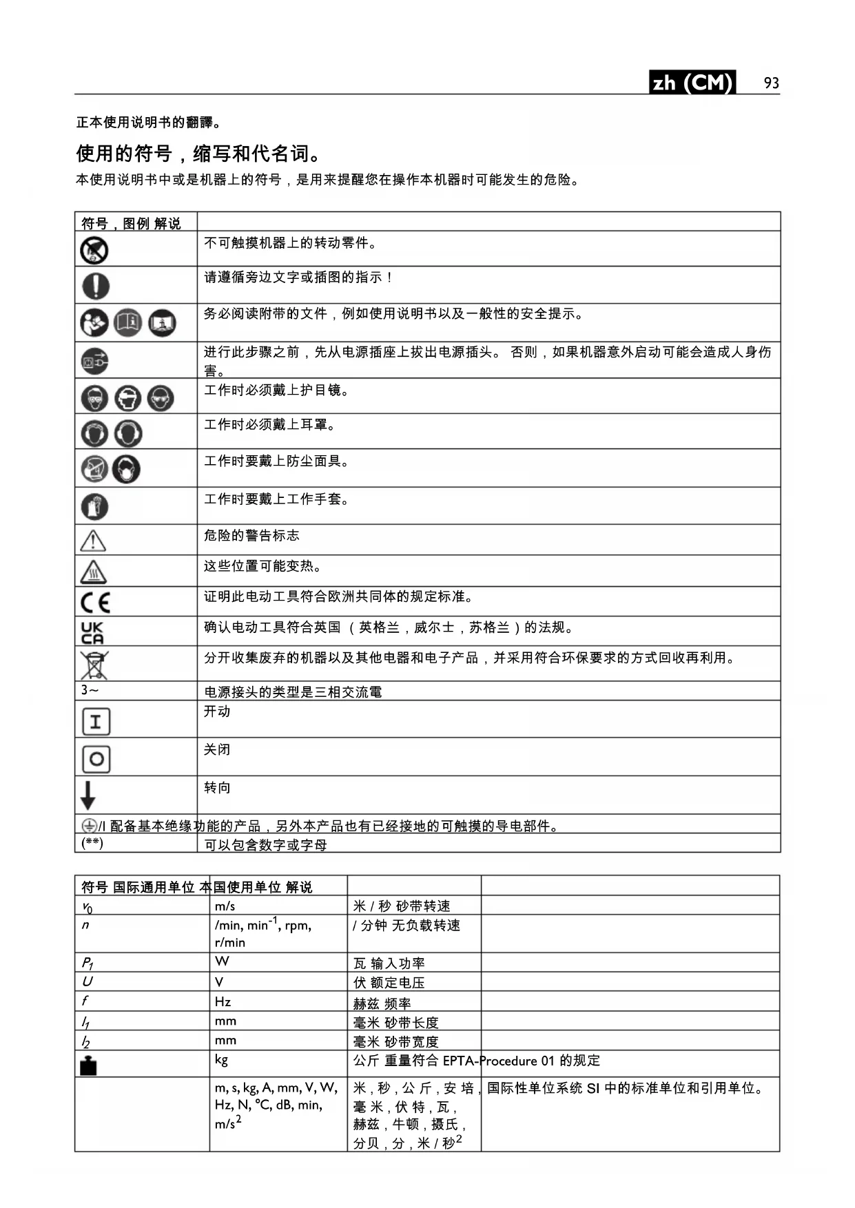 230 V/220 V Стр. 99 Тип GIMS72 2H/GIMS150 2H 440 V/254 V, 400 V/220 V Стр. 10093 zh (CM) zh (CM) 正本使用说明书的翻譯。 使用的符号,缩写和代名词。 本使用说明书中或是机器上的符号,是用来提醒您在操作本机器时可能发生的危险。