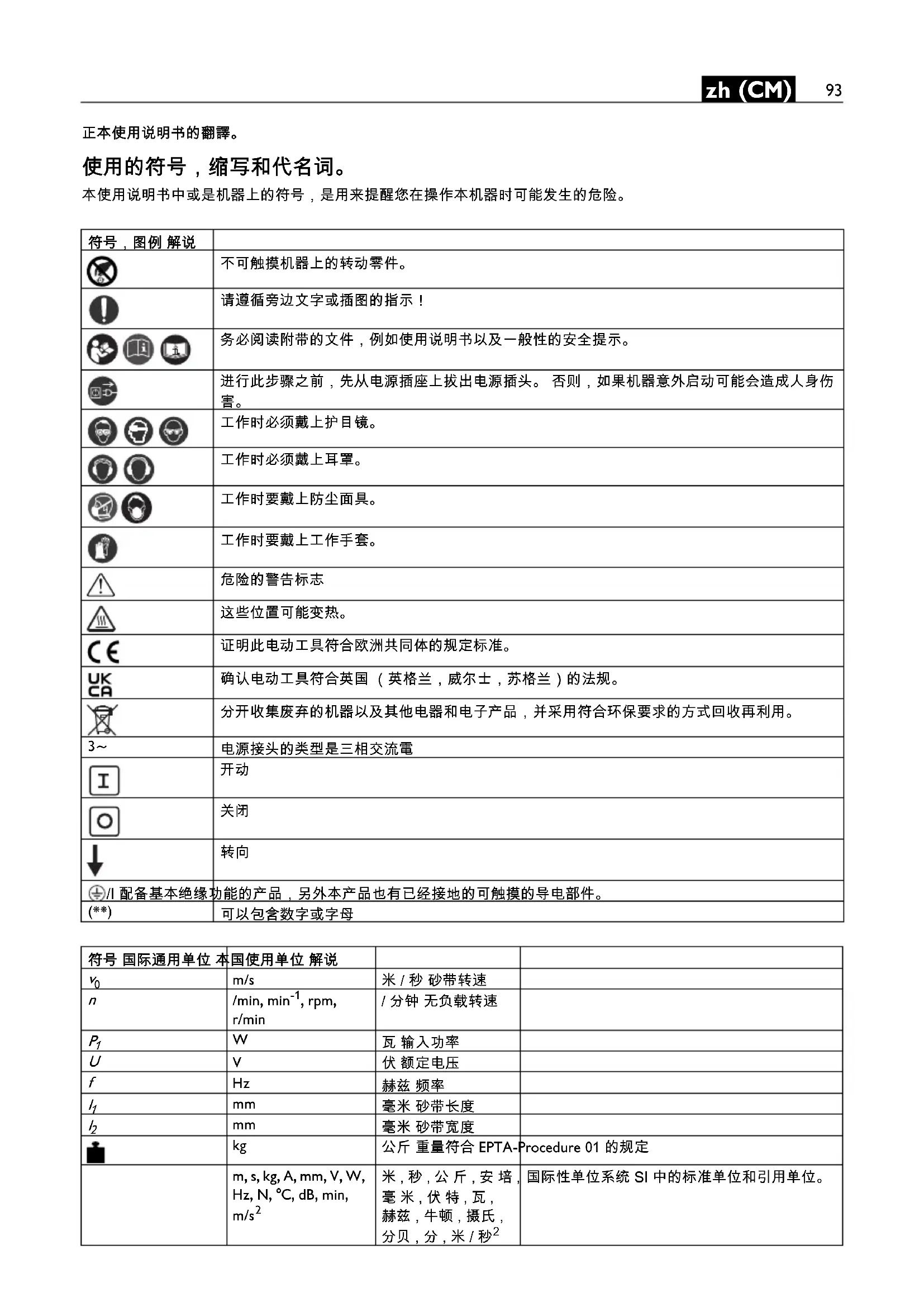 230 V/220 V Стр. 99 Тип GIMS72 2H/GIMS150 2H 440 V/254 V, 400 V/220 V Стр. 10093 zh (CM) zh (CM) 正本使用说明书的翻譯。 使用的符号,缩写和代名词。 本使用说明书中或是机器上的符号,是用来提醒您在操作本机器时可能发生的危险。