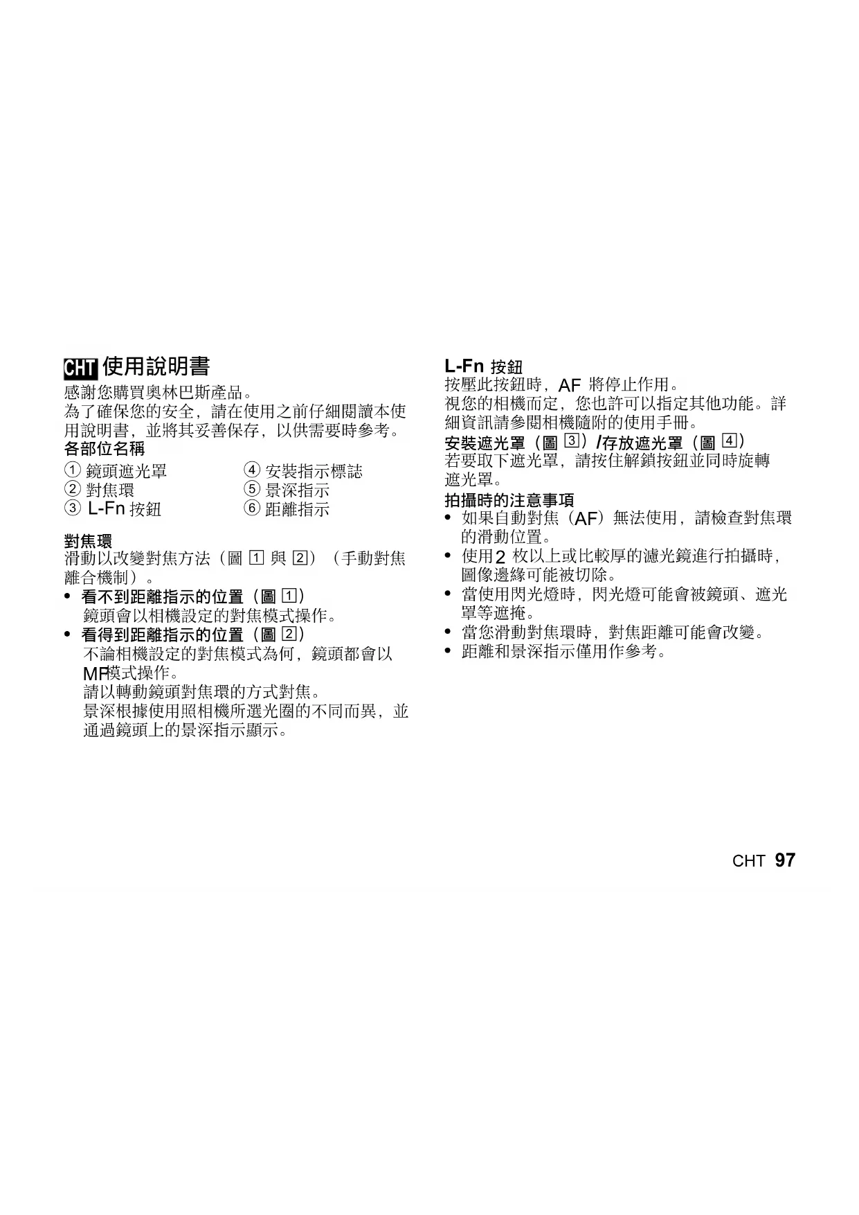 用户手册 ED 45mm F1.2 PRO OLYMPUS