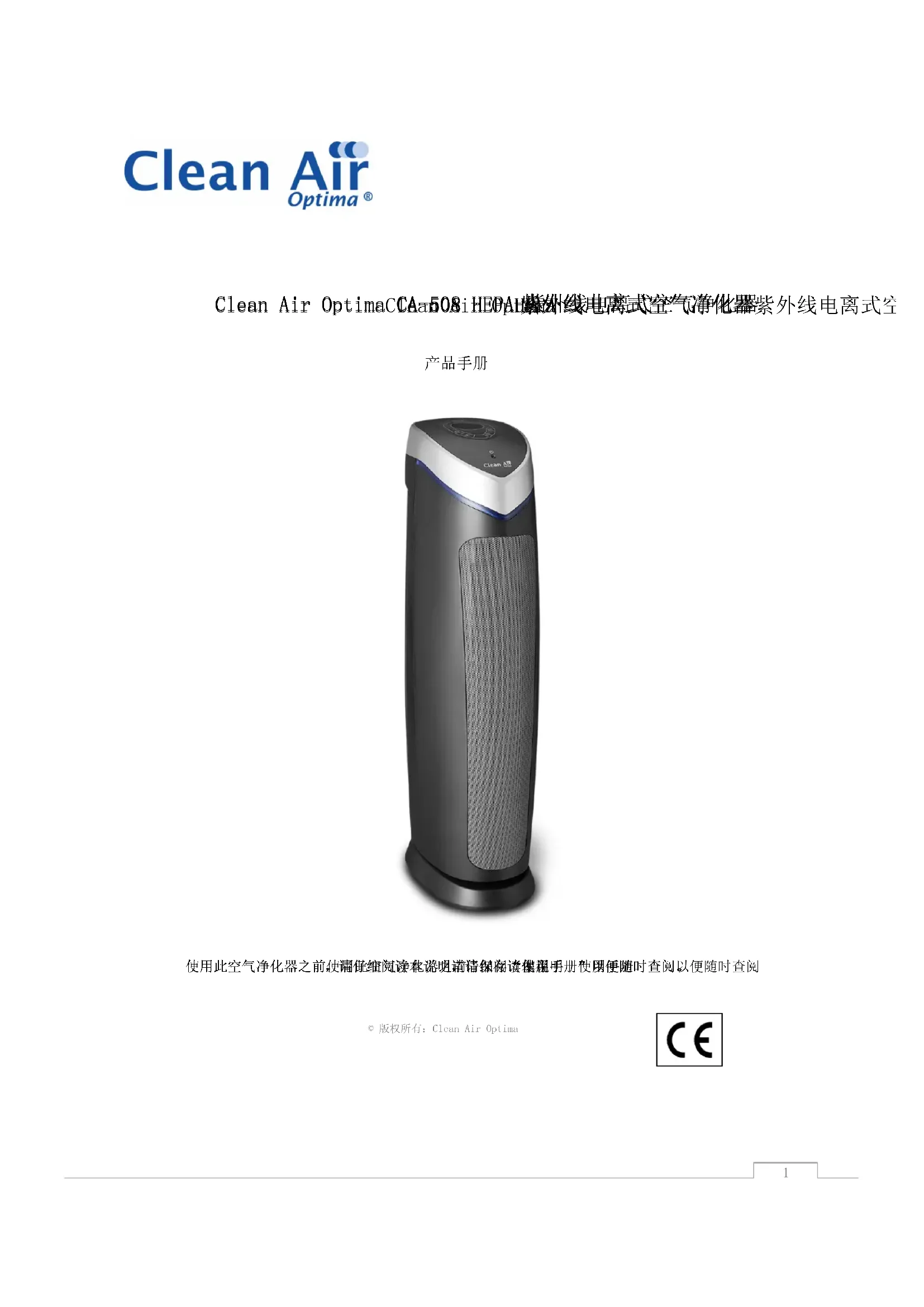 CA508 - 空气净化器 Clean Air Optima - 免费用户手册