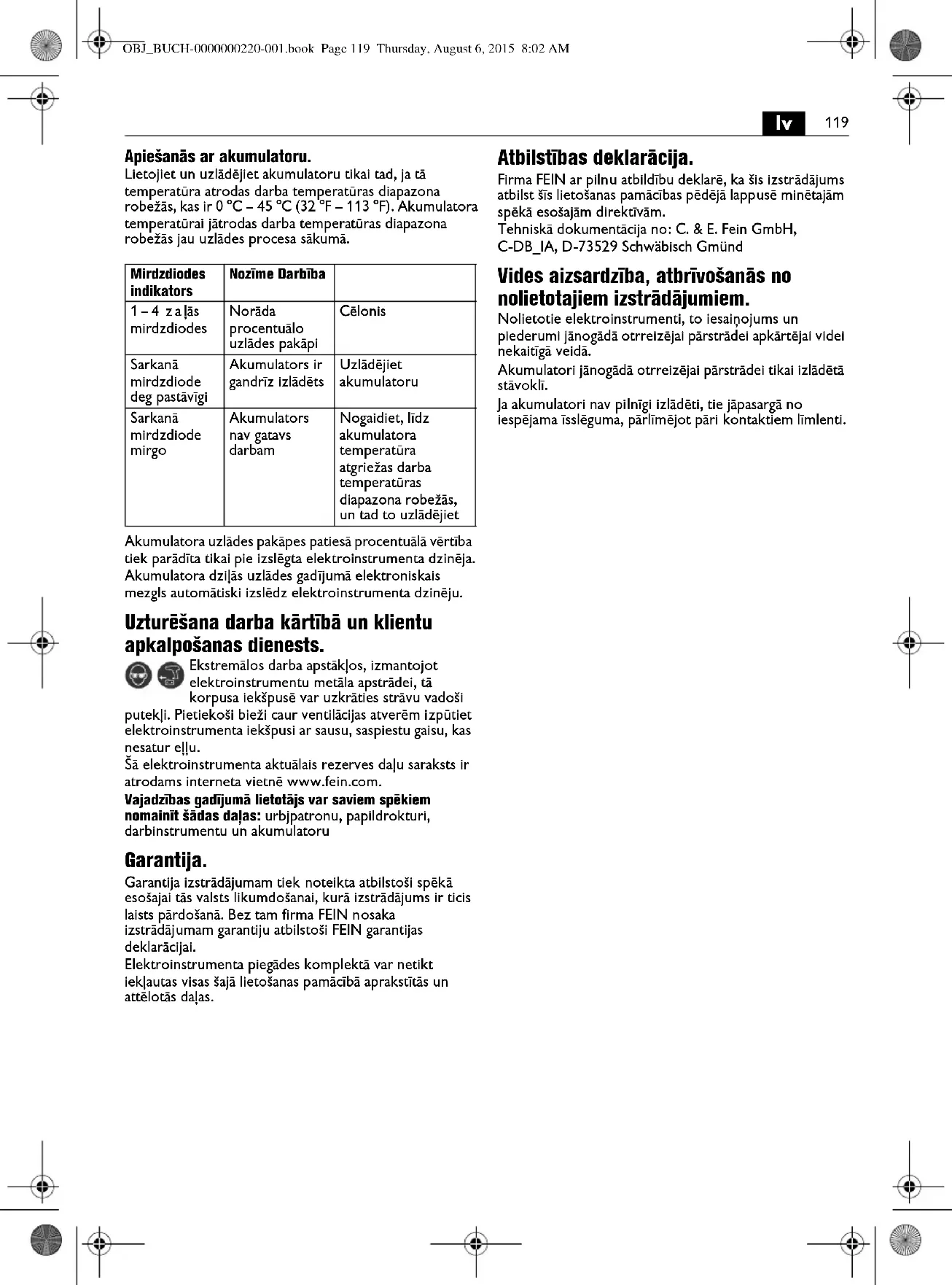 有關本產品的保修條件,請參考購買國的相關法律規定。 此外 FEIN 還提供制造廠商的保修服務。有關保修的細節, 請向您的專業經銷商,FEIN 在貴國的代理或您的 FEIN 顧
