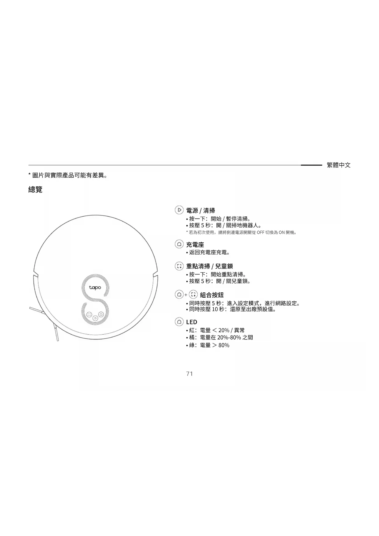 下载您的设备说明 机器人吸尘器 免费PDF格式!查找您的手册 Tapo RV30 - TP-LINK 并重新掌握您的电子设备。本页发布了使用您的设备所需的所有文档。 Tapo RV30 品牌 TP-LINK.