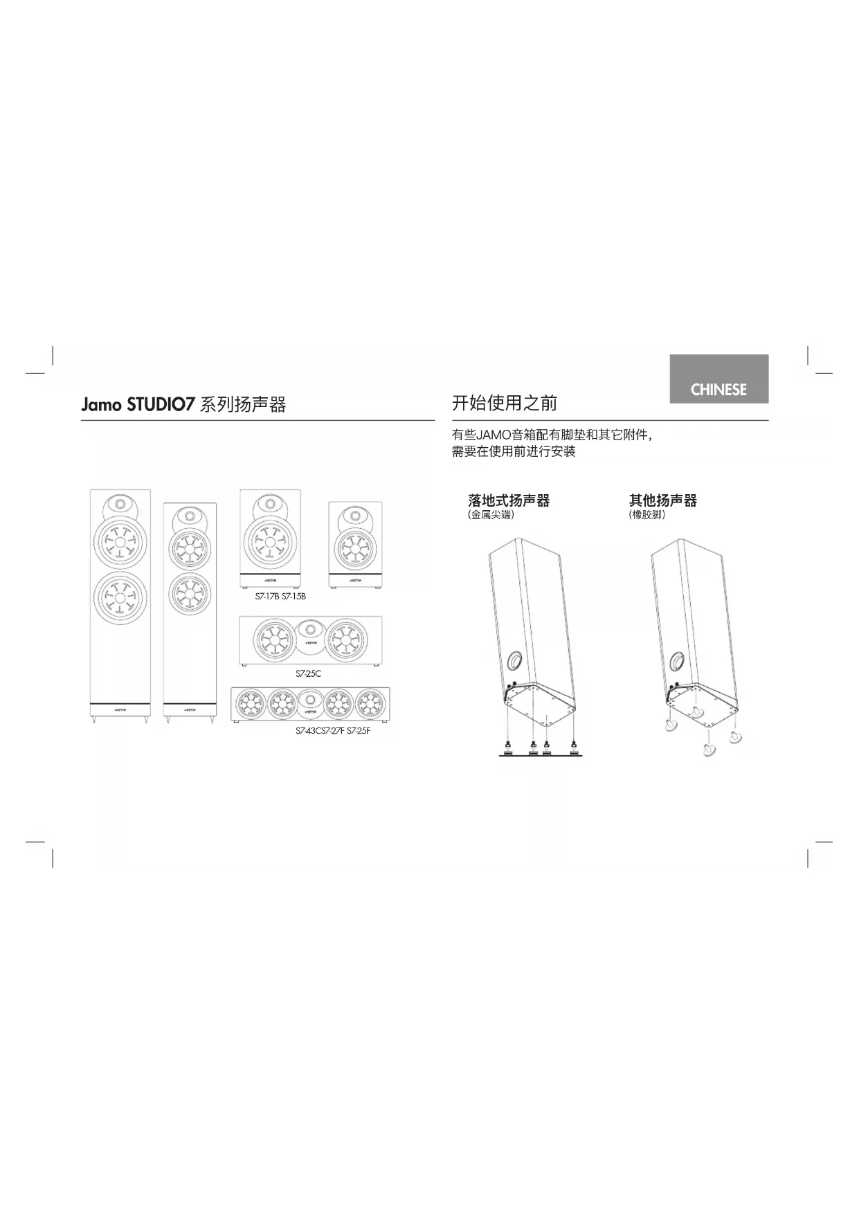 下载您的设备说明 扬声器 免费PDF格式!查找您的手册 S7-43C - JAMO 并重新掌握您的电子设备。本页发布了使用您的设备所需的所有文档。 S7-43C 品牌 JAMO.
