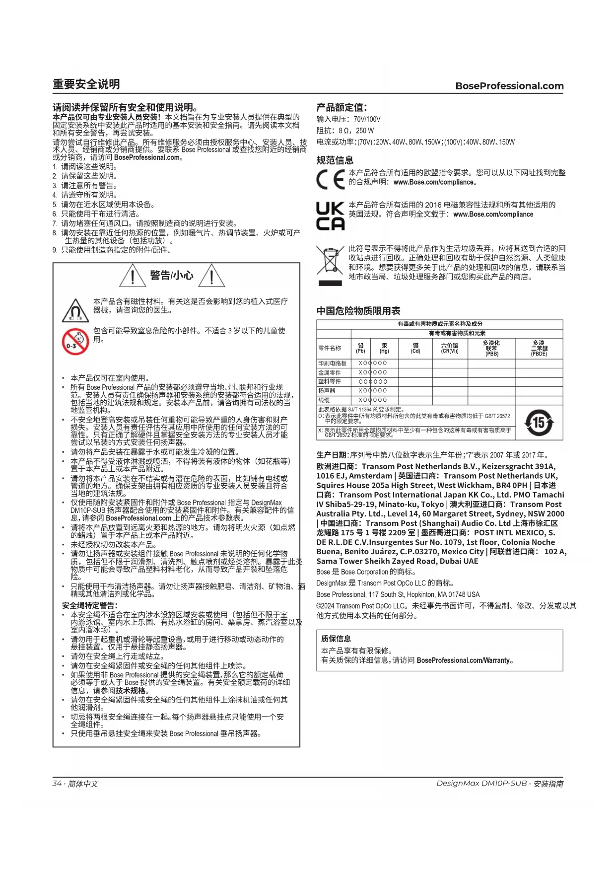 用户手册 DesignMax DM10P-SUB BOSE