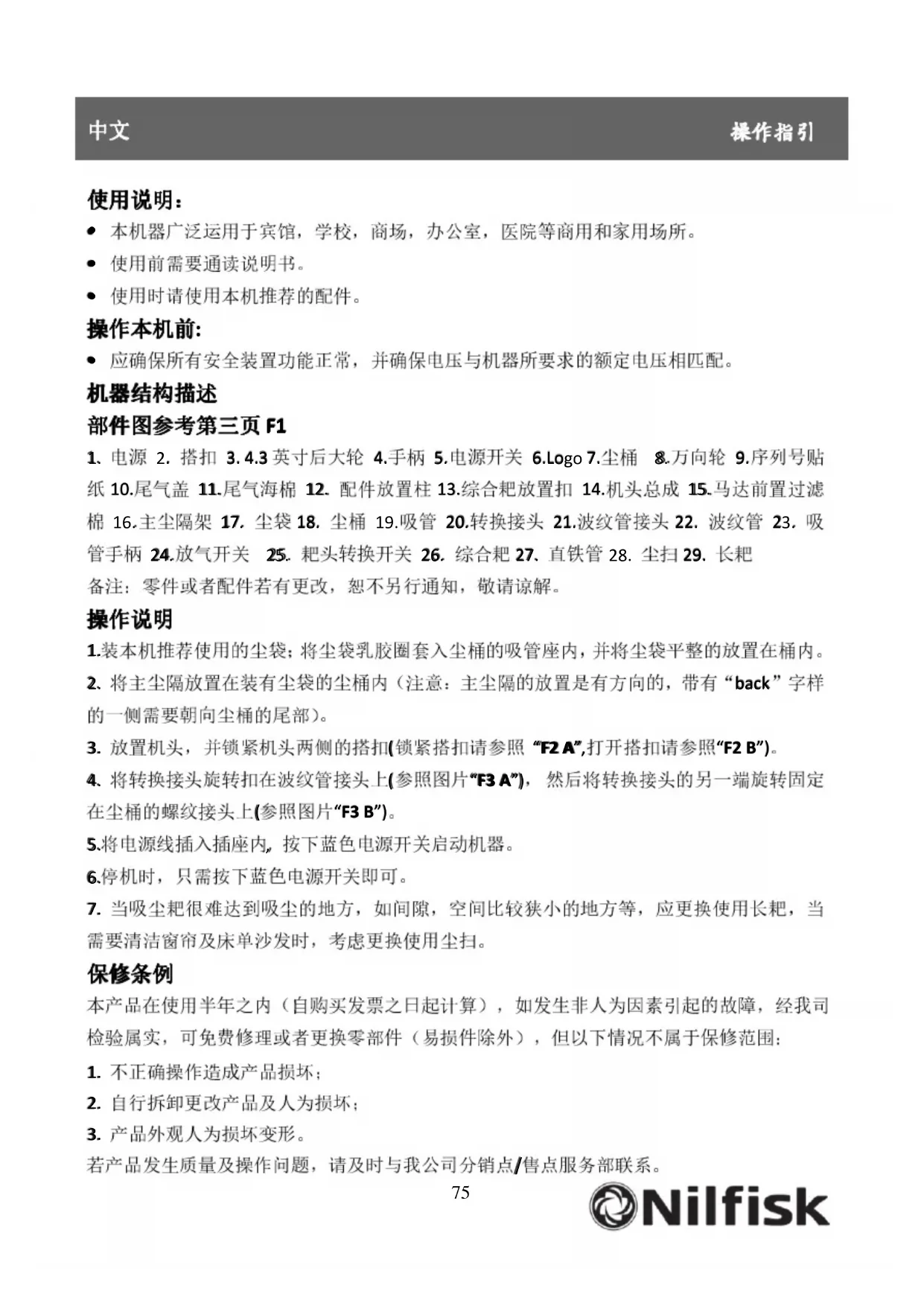 VP100 - 吸尘器 NILFISK - 免费用户手册
