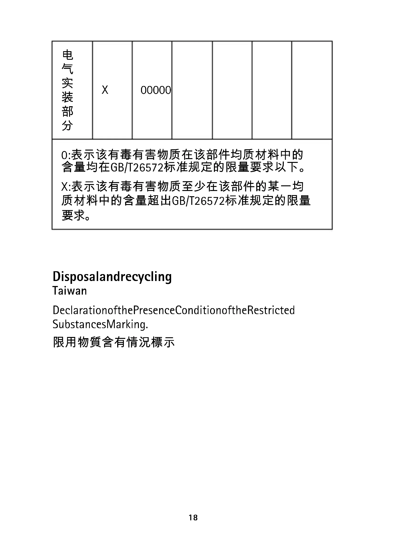 0:表示该有毒有害物质在该部件均质材料中的 含量均在GB/T26572标准规定的限量要求以下。 X:表示该有毒有害物质至少在该部件的某一均 质材料中的含量超出GB/T26572标准规定的限量