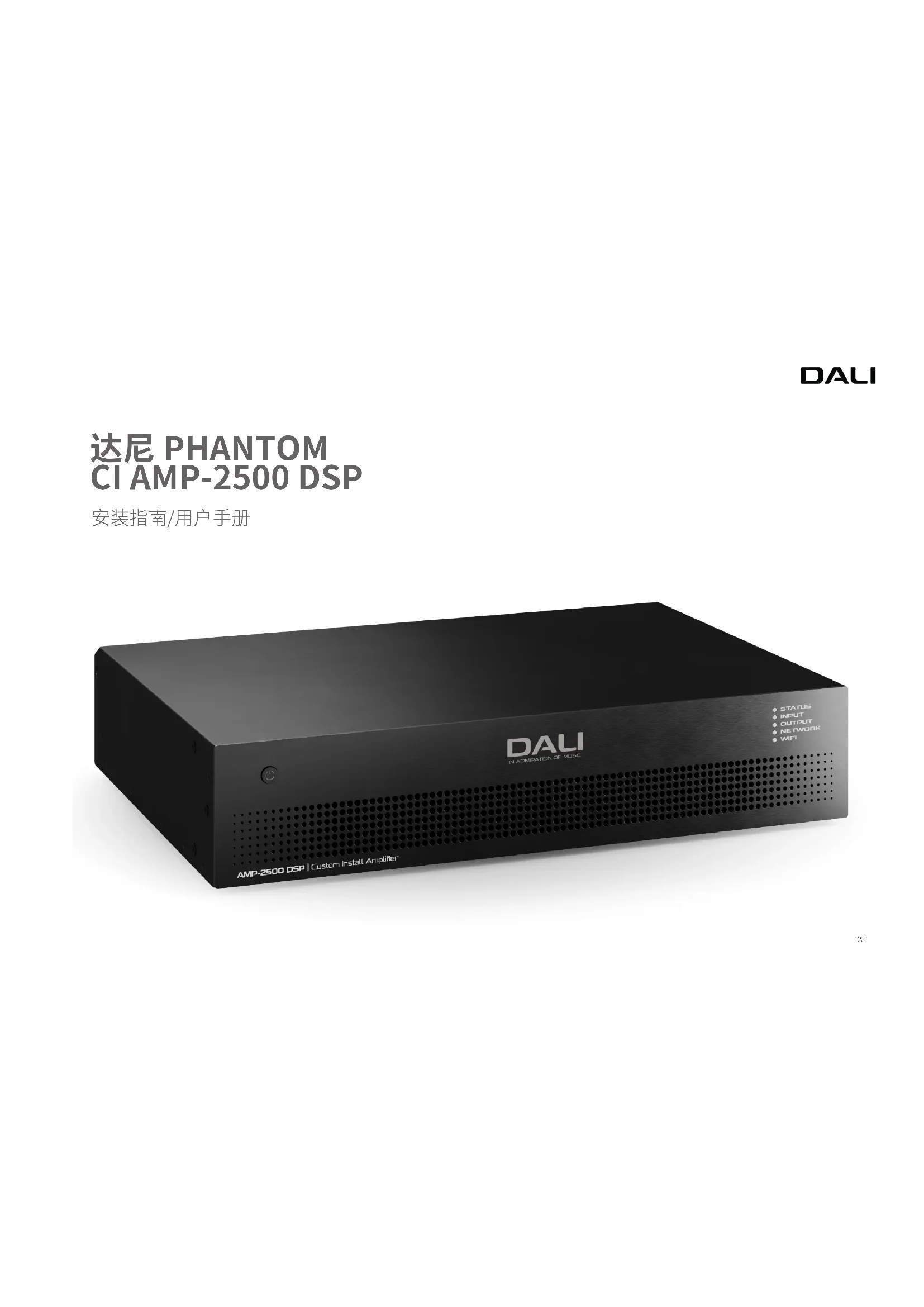 本手册介绍了AMP-2500DSP的特征、安装和功能。安装 和使用放大器前,请仔细阅读本手册。如果您对放大器的 配置、安装或运行有任何疑问,请联系您的达尼零售商或 安装商,或直接通过dali-speakers.com上的支持页面联