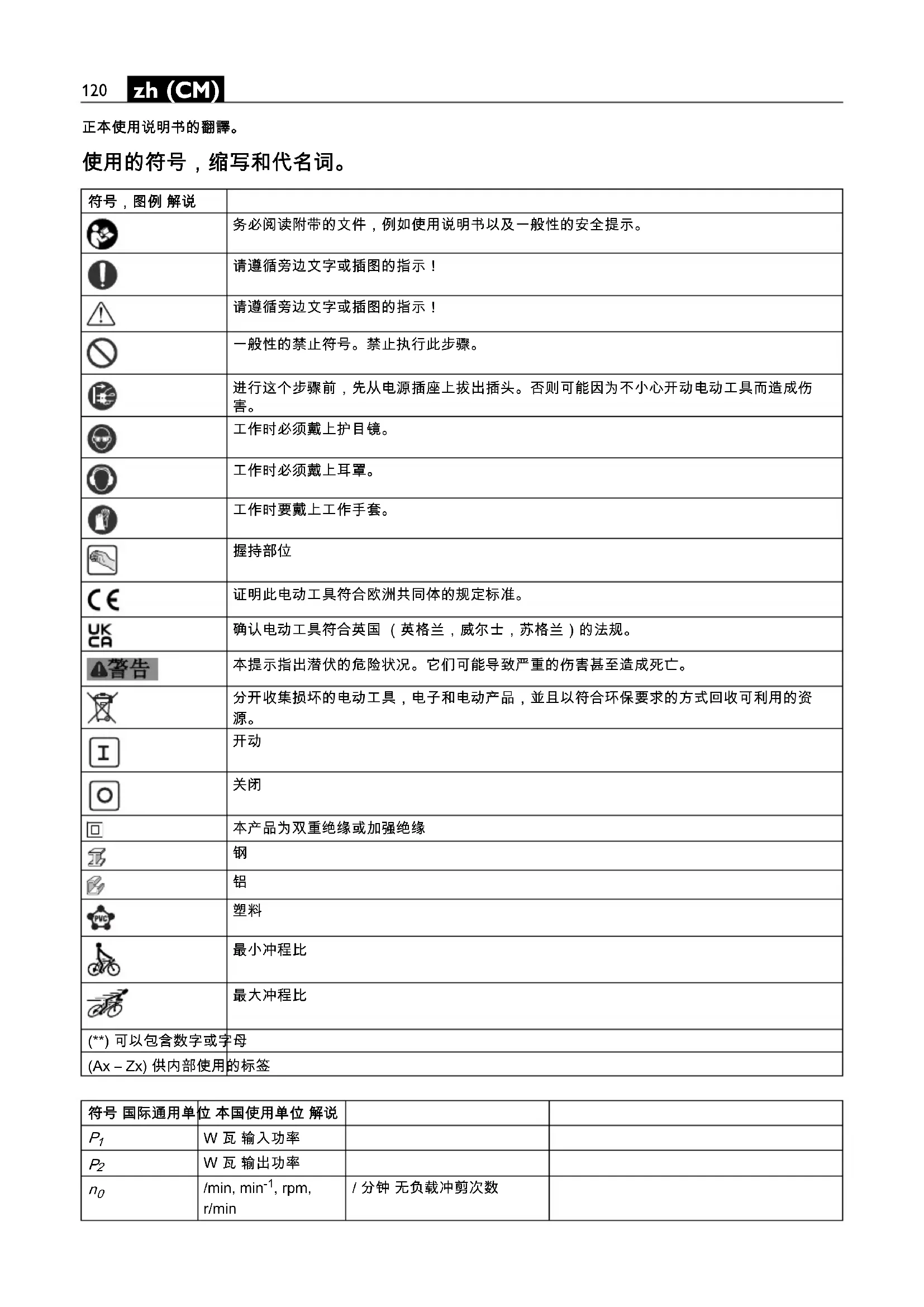 证明此电动工具符合欧洲共同体的规定标准。 确认电动工具符合英国 (英格兰,威尔士,苏格兰)的法规。 本提示指出潜伏的危险状况。它们可能导致严重的伤害甚至造成死亡。 分开收集损坏的电动工具,电子和电动产品,並且以符合环保要求的方式回收可利用的资