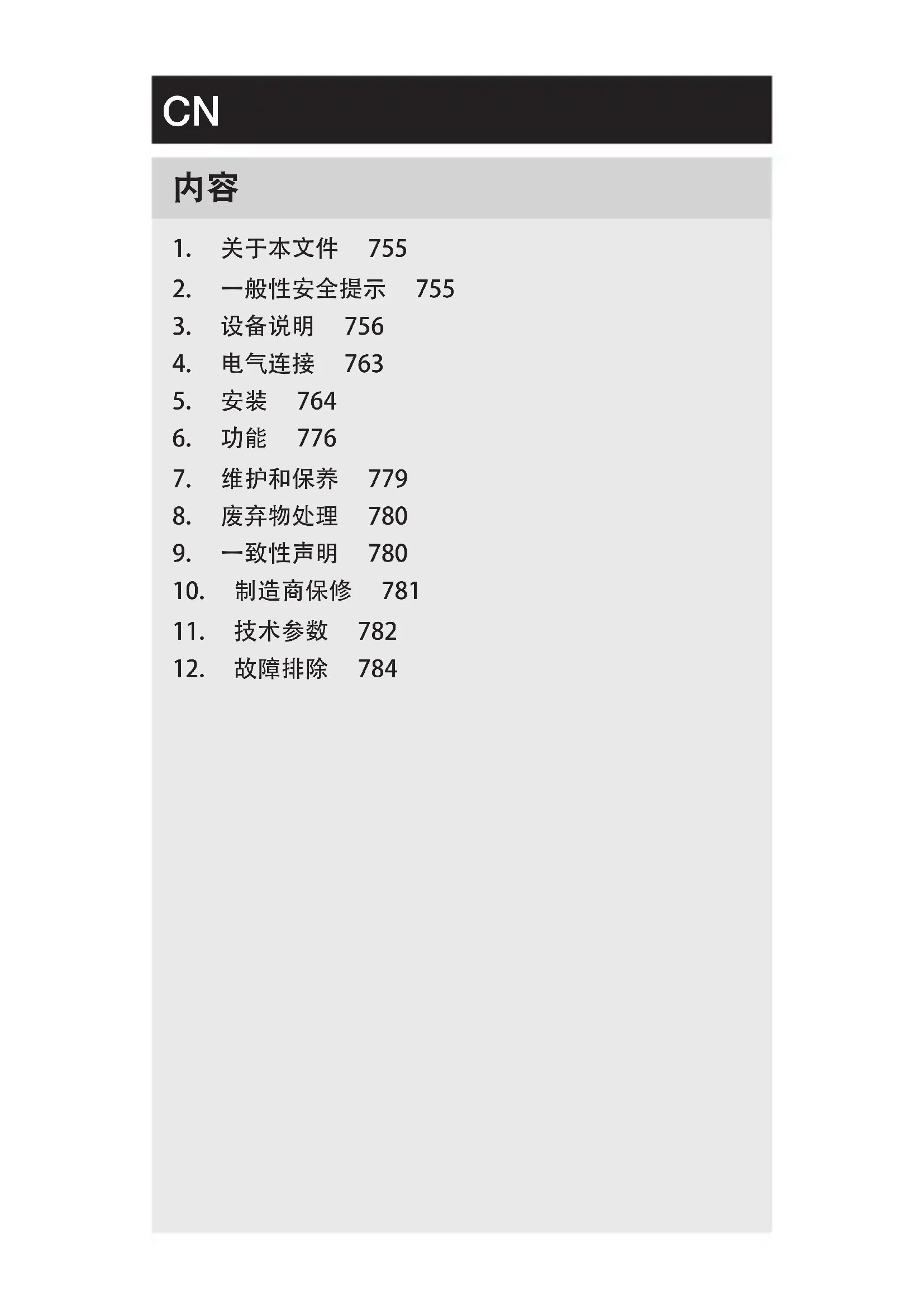 – 仅可使用原装备件。 – 仅允许专业机构进行维修。 – 756 –
