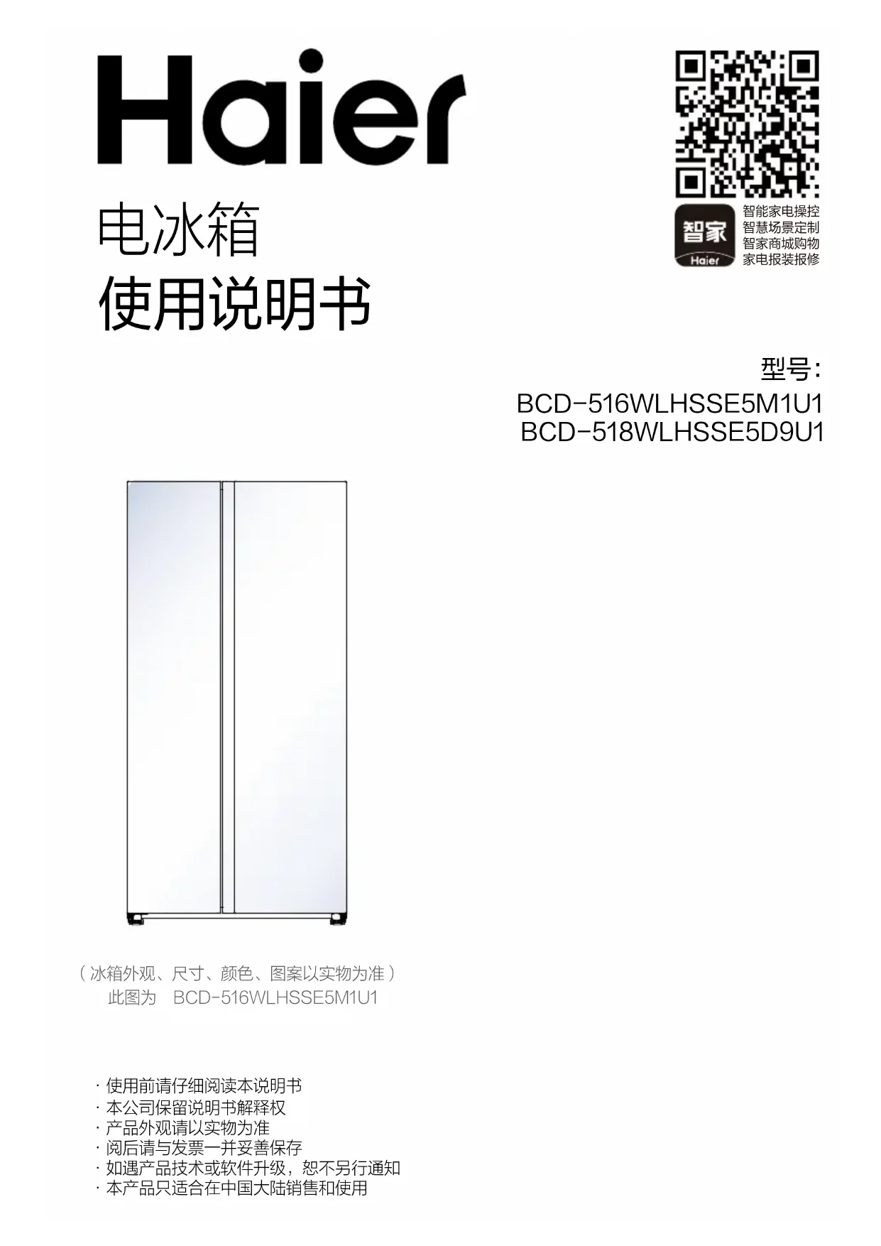 用户手册 BCD-518WLHSSE5D9U1 HAIER