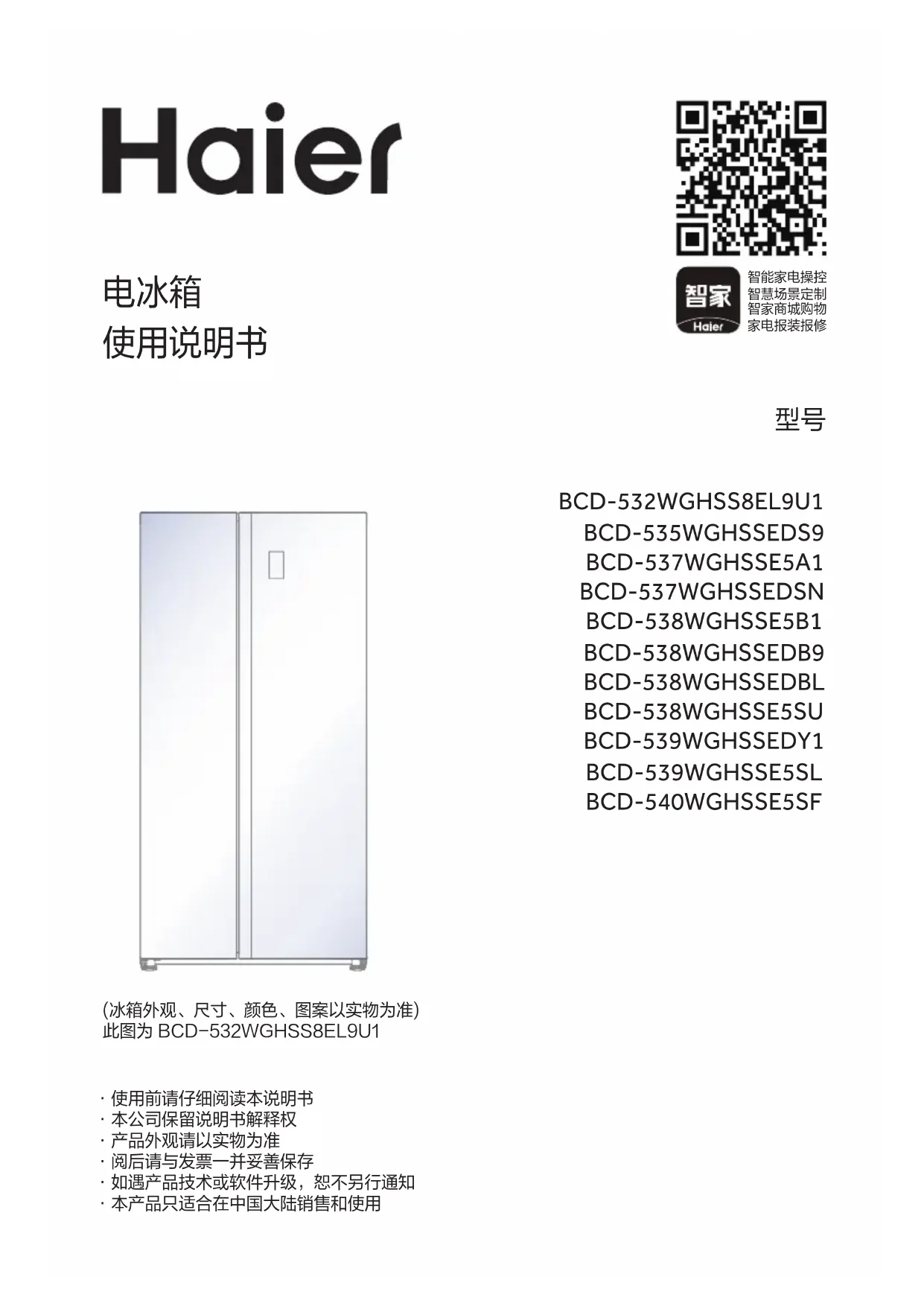用户手册 BCD-537WGHSSE5A1 HAIER