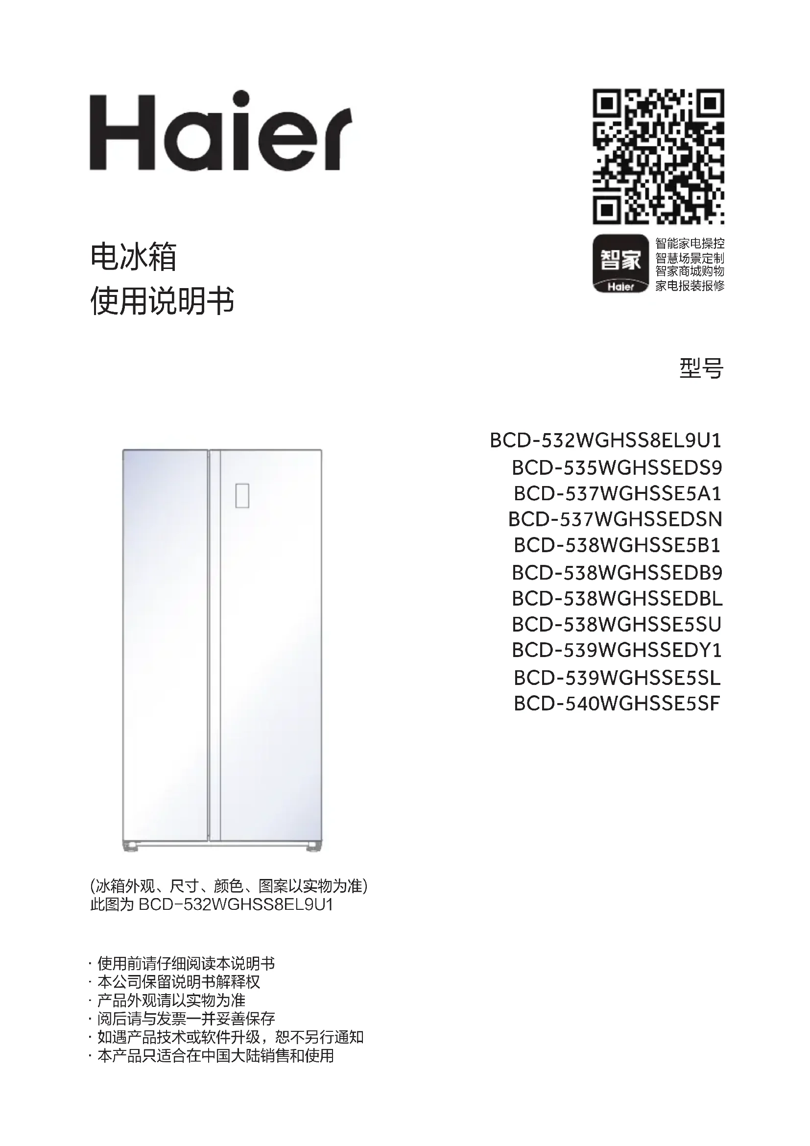 用户手册 BCD-540WGHSSE5SF HAIER