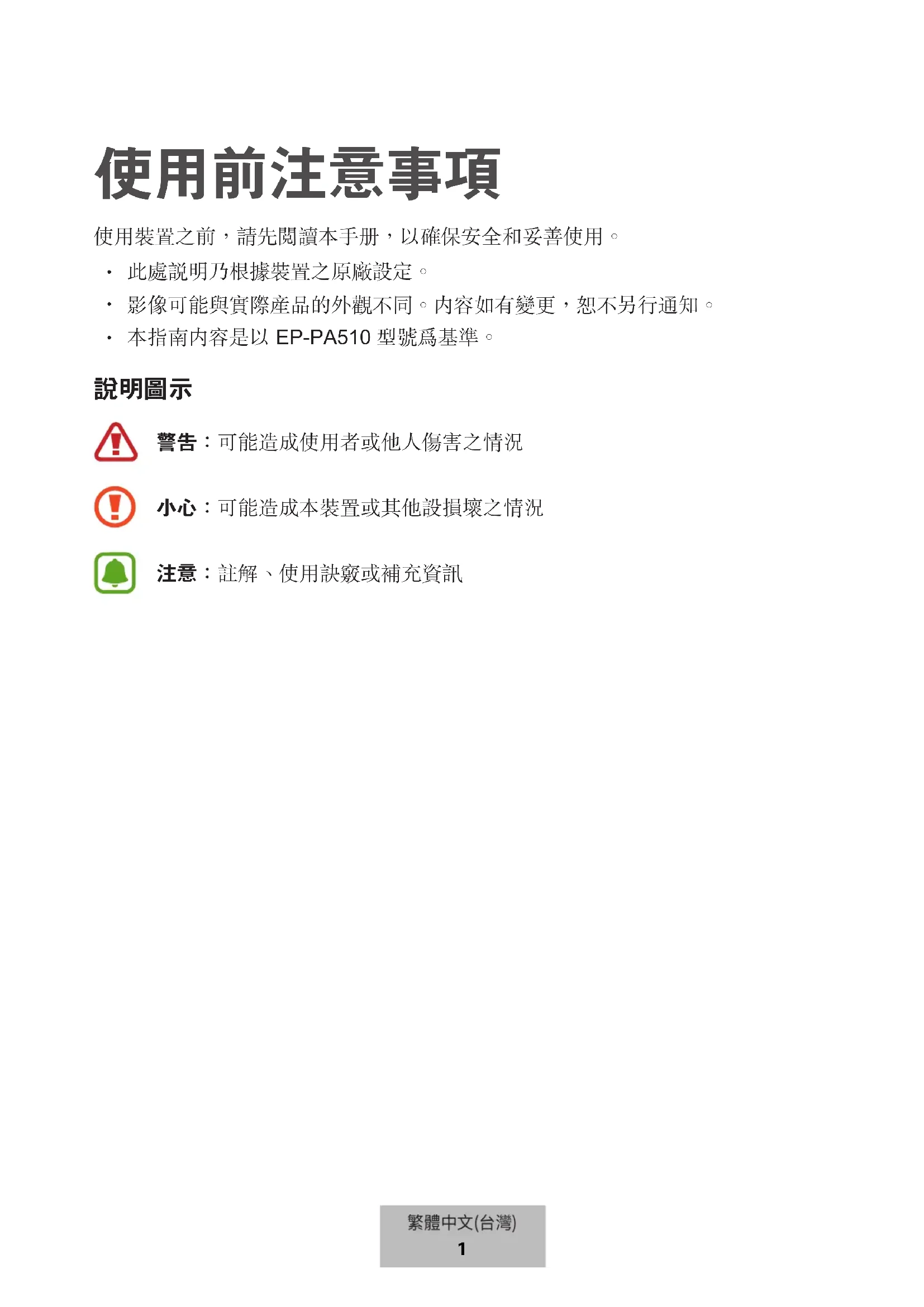 使用裝置之前,請先閱讀本手冊,以確保安全和妥善使用。