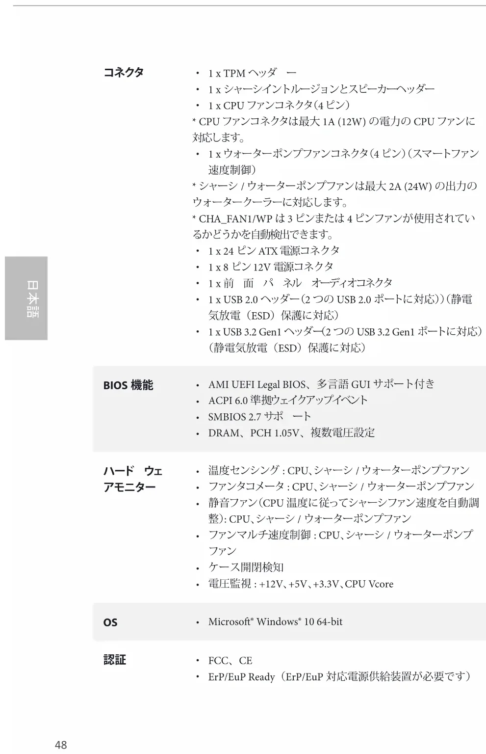 電圧監視 : +12V、+5V、+3.3V、CPU Vcore