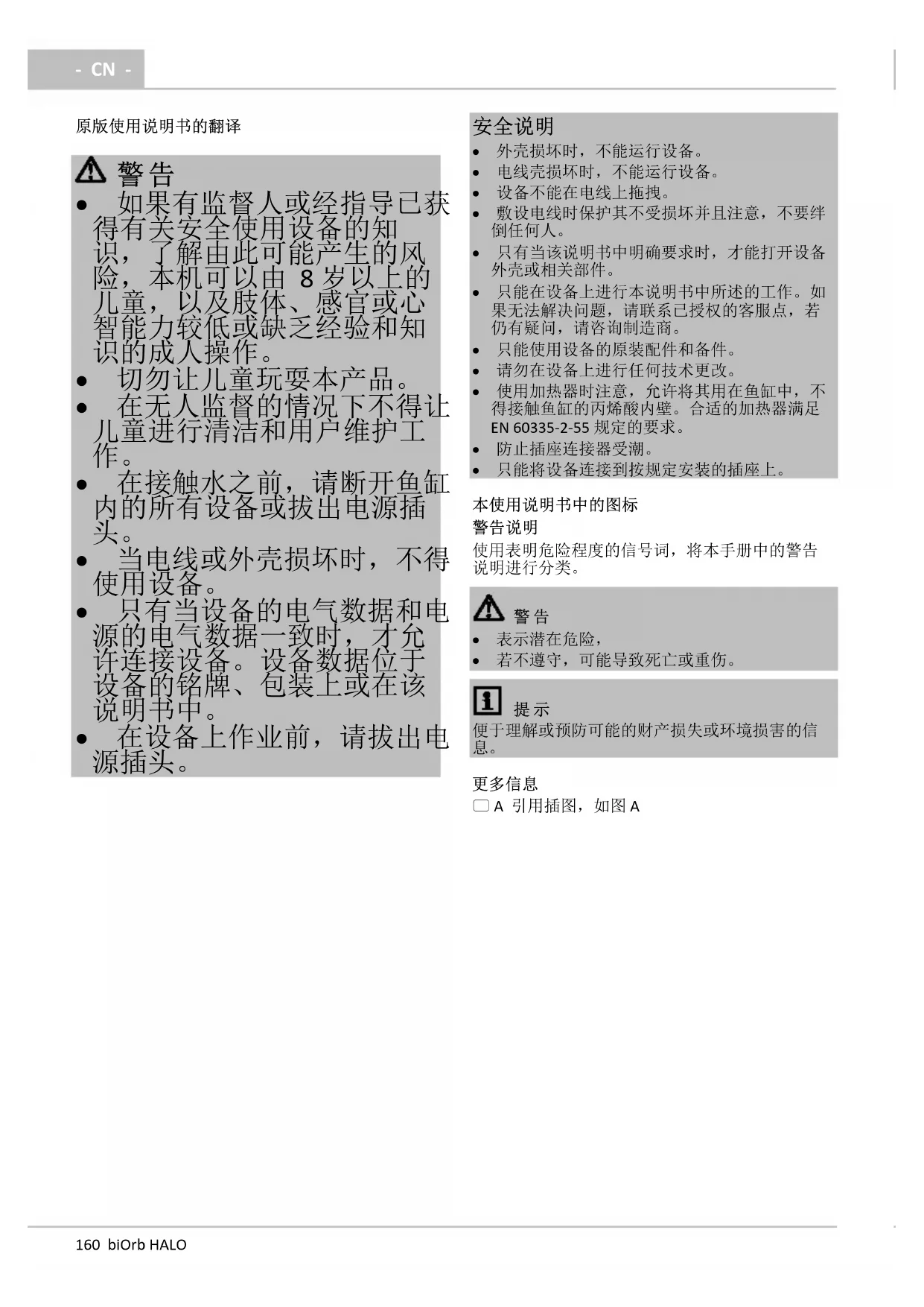- 使用加热器时注意,允许将其用在鱼缸中,不 得接触鱼缸的丙烯酸内壁。合适的加热器满足 EN 60335-2-55 规定的要求。