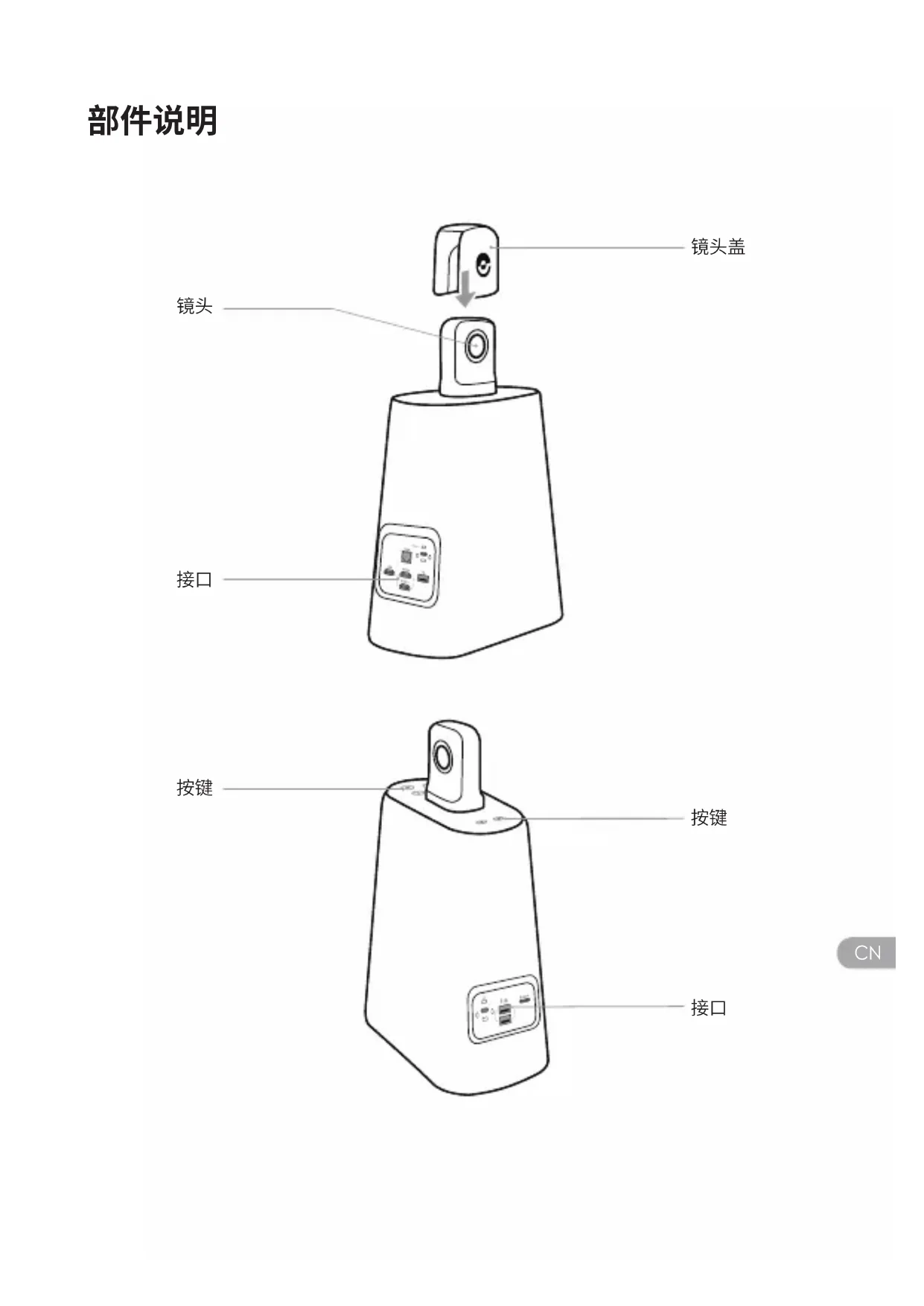 短按麦克风静音 短按切换画面模式 长按秒锁定画面视角CN