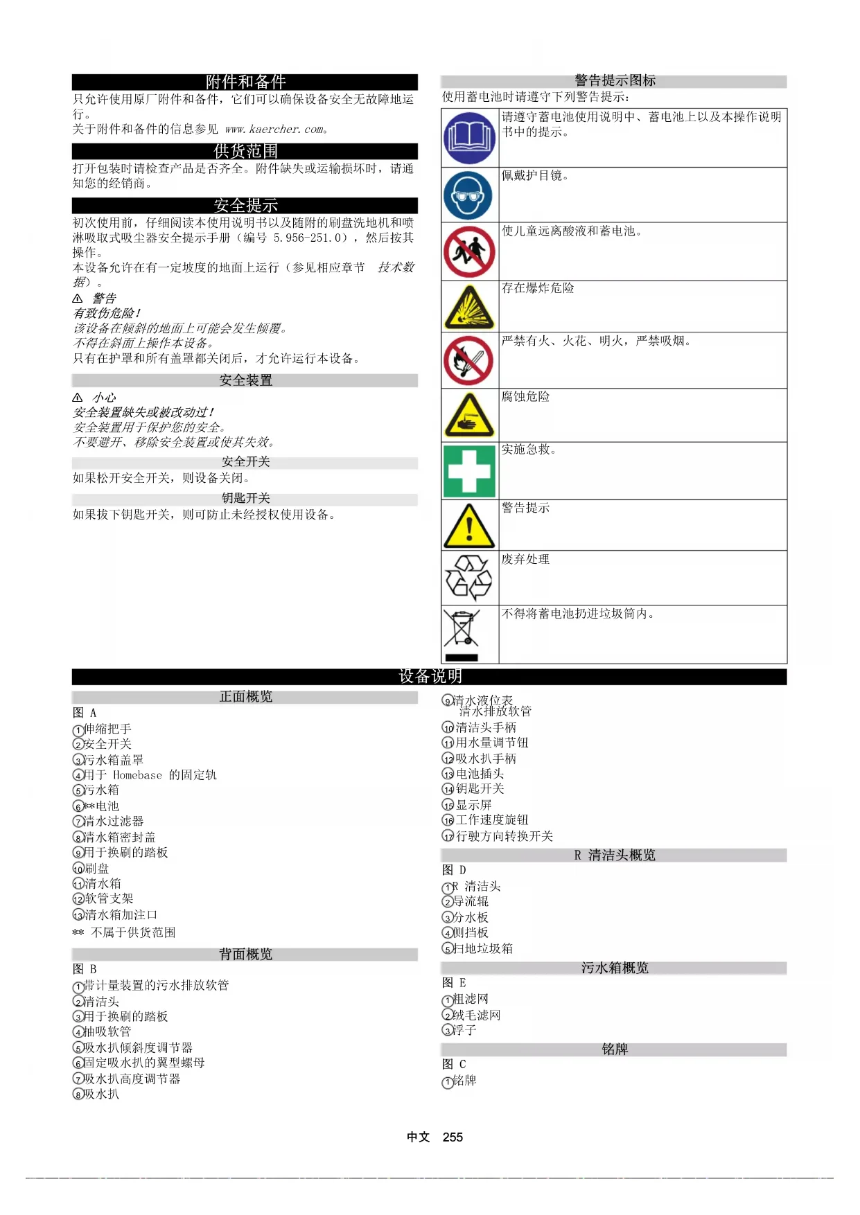 初次使用前,仔细阅读本使用说明书以及随附的刷盘洗地机和喷 淋吸取式吸尘器安全提示手册(编号 5.956-251.0),然后按其