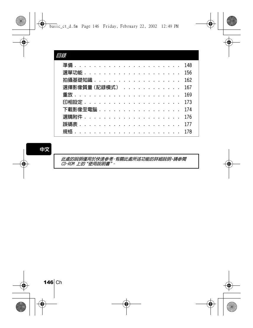中文 此處的說明僅用於快速參考。有關此處所述功能的詳細說明,請參閱 CD-ROM 上的“使用說明書"。